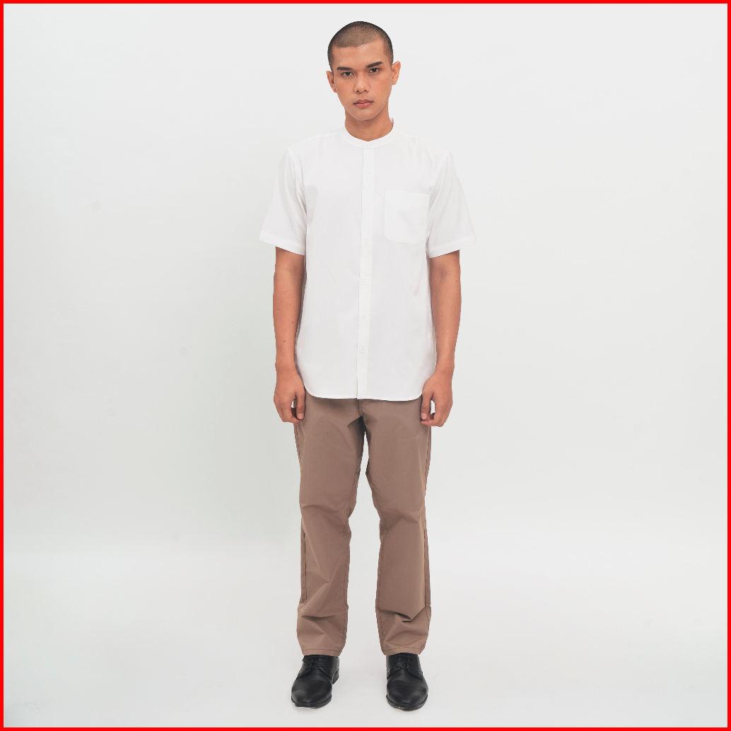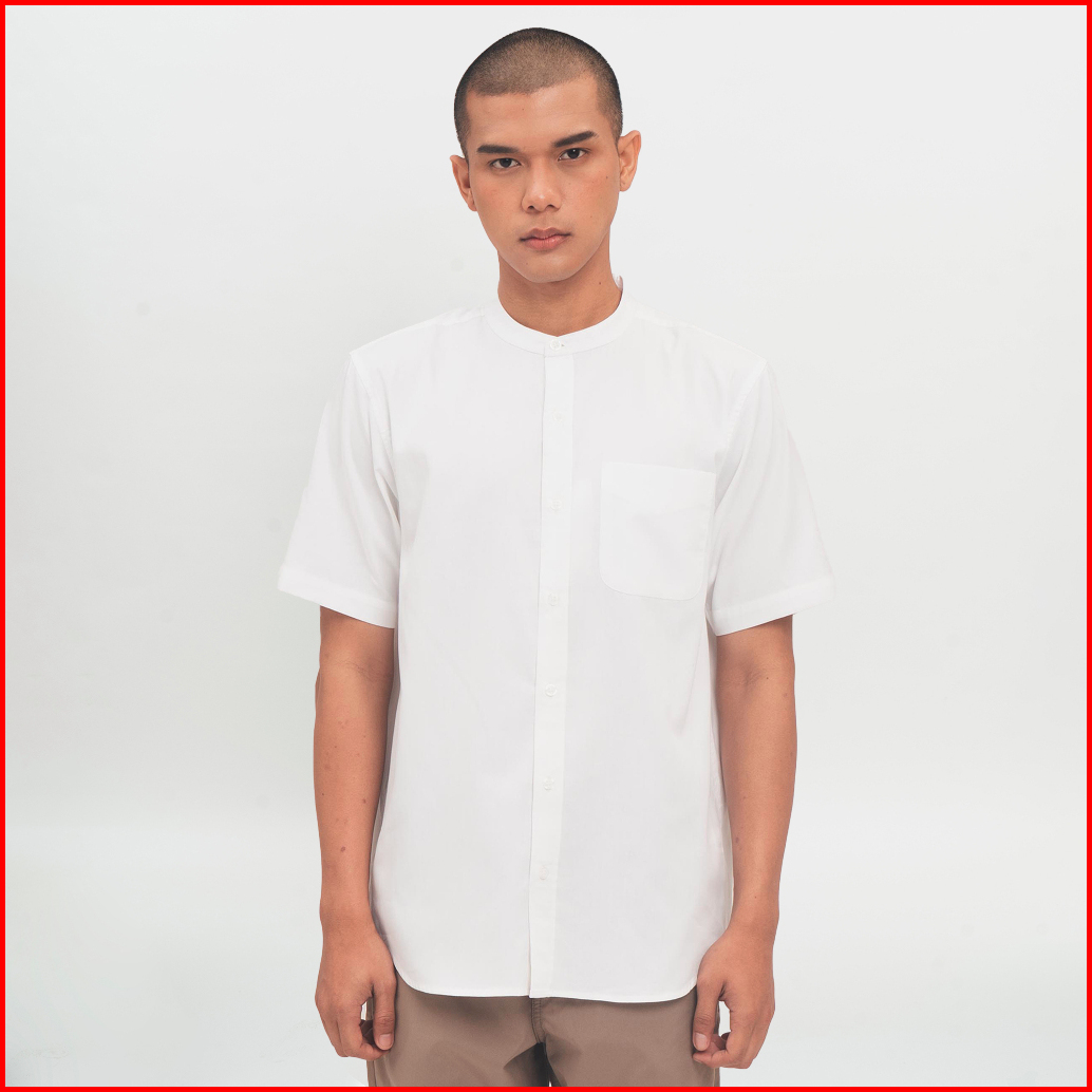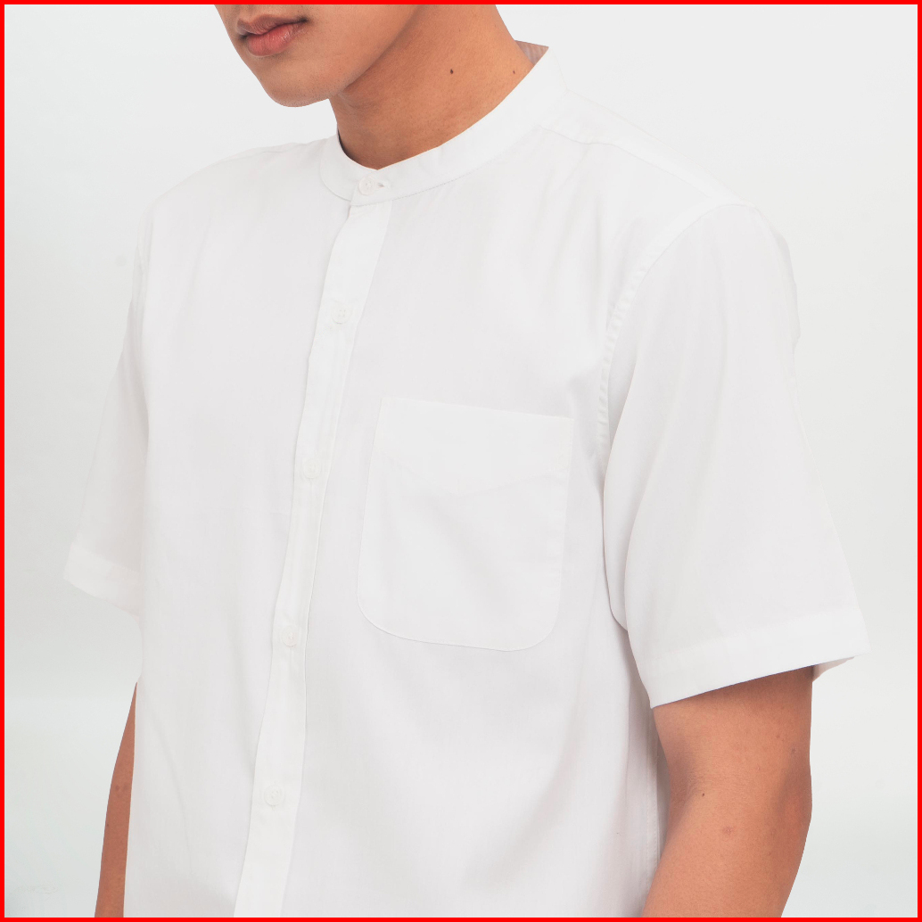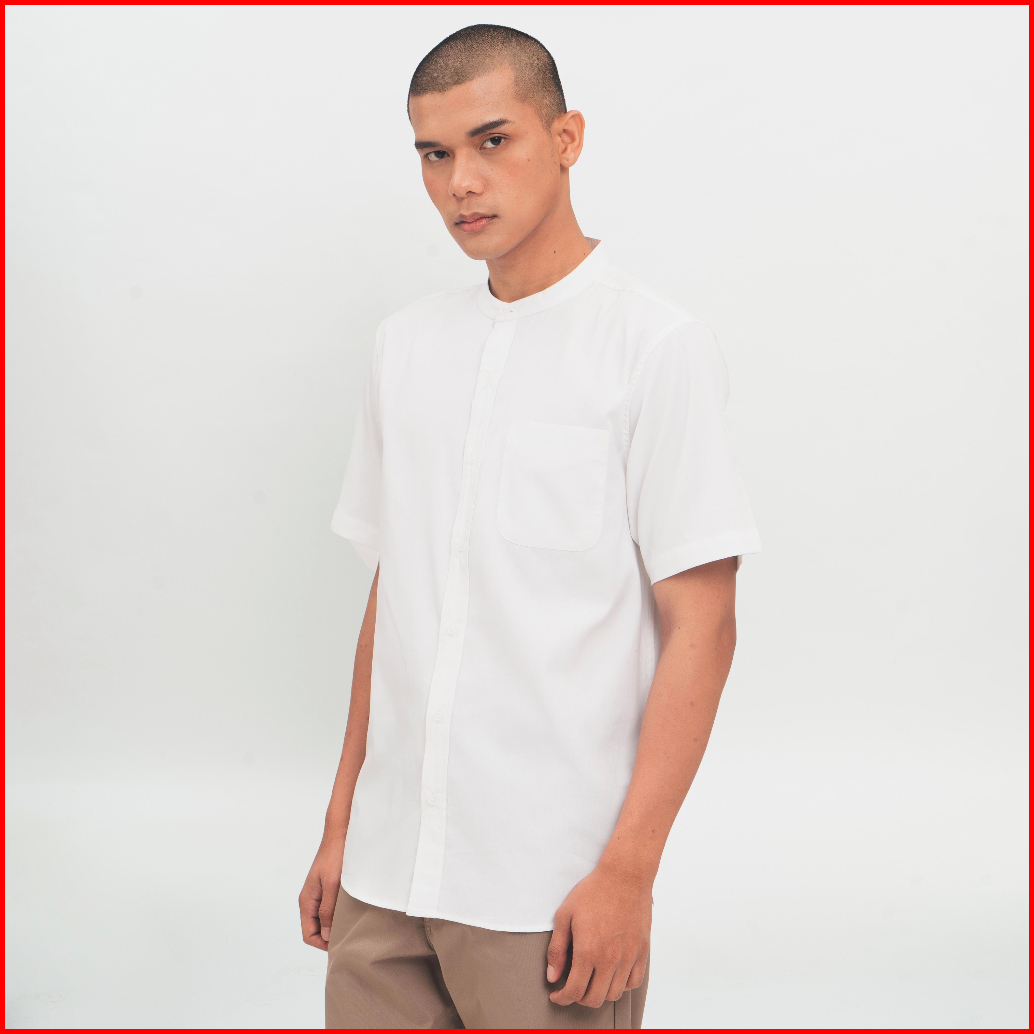 M231 Kemeja Pria Koko Shanghai Polos Pendek Putih 0914d