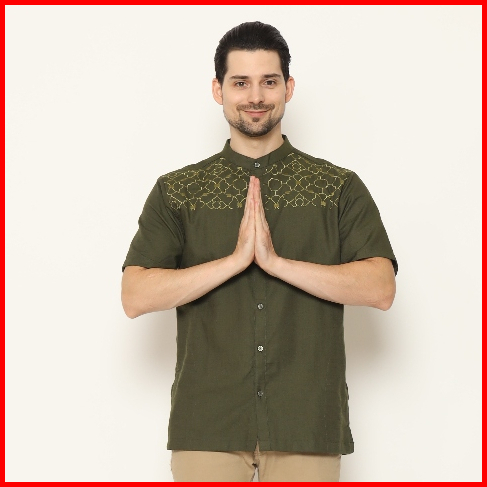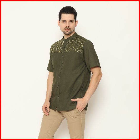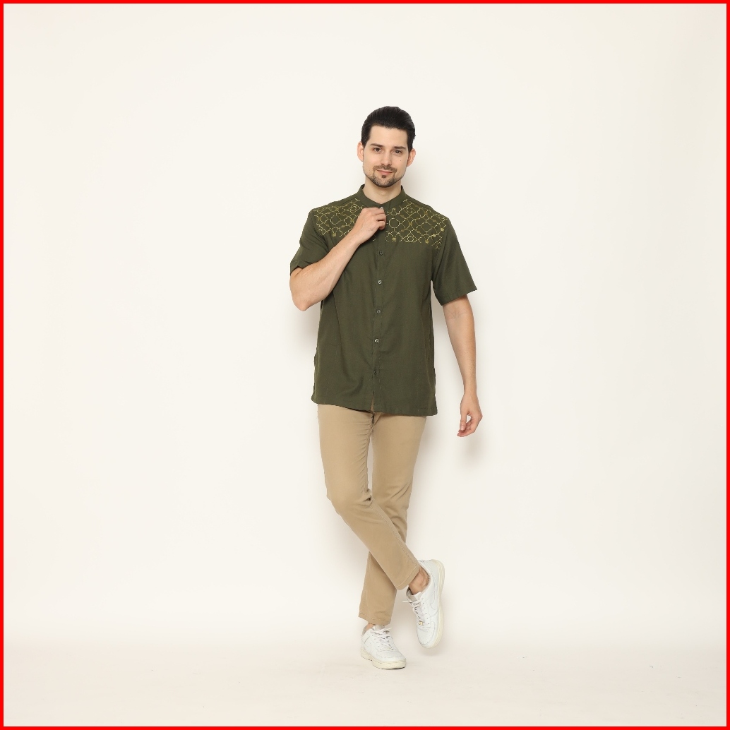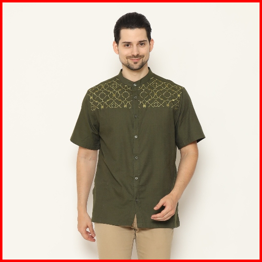 Amk Kemeja Koko Pria Lengan Pendek Kk Haddid S S Dark Olive