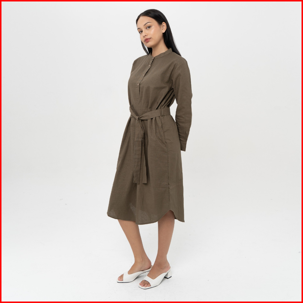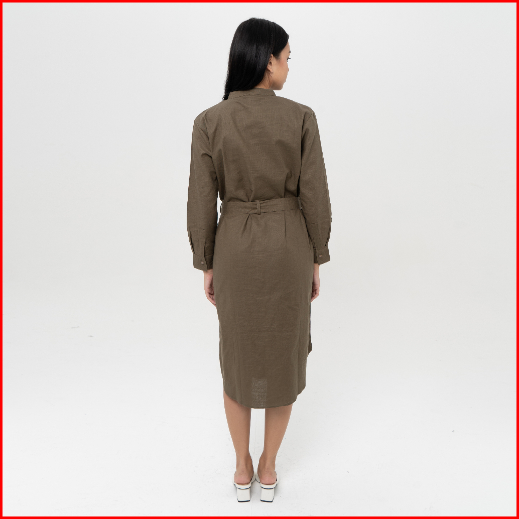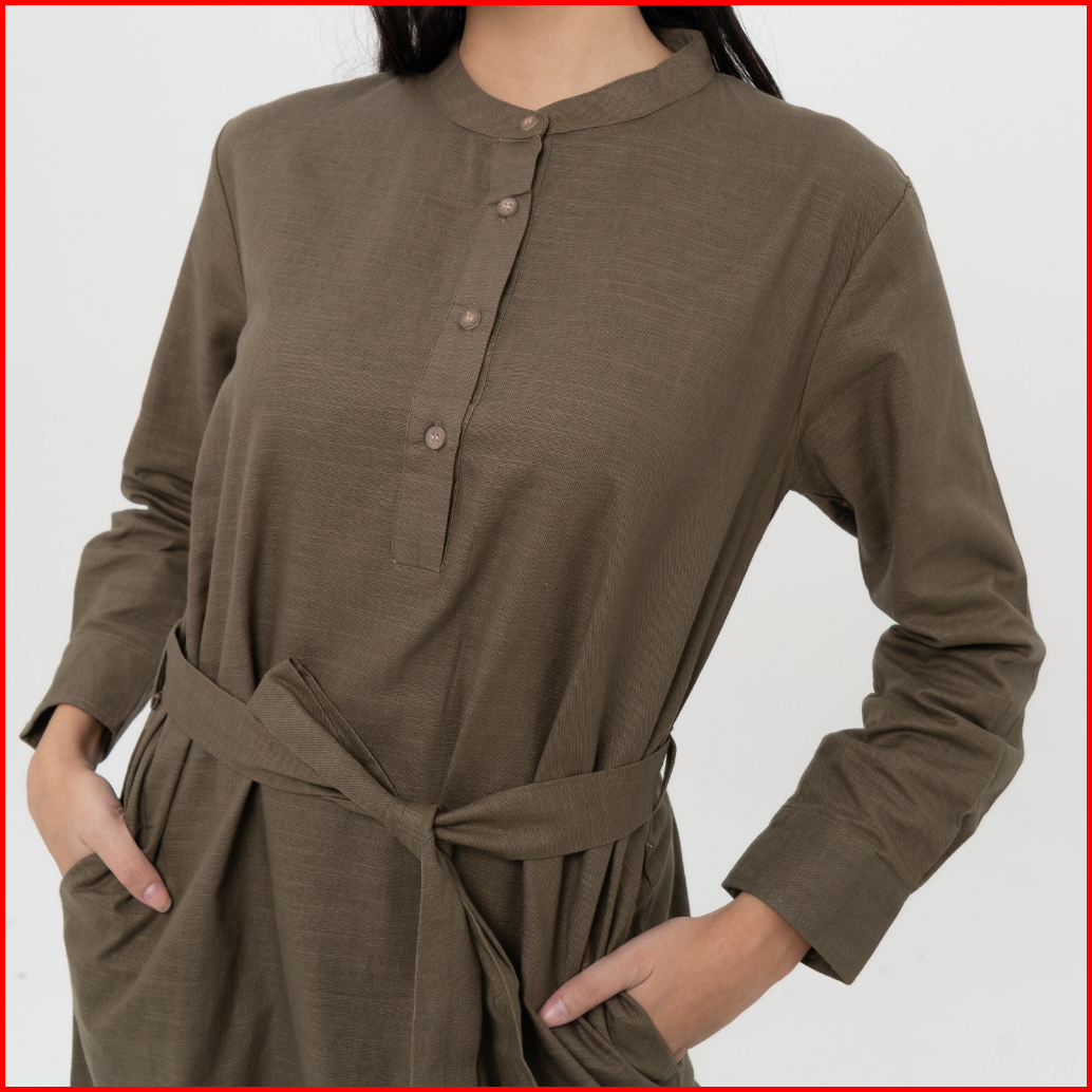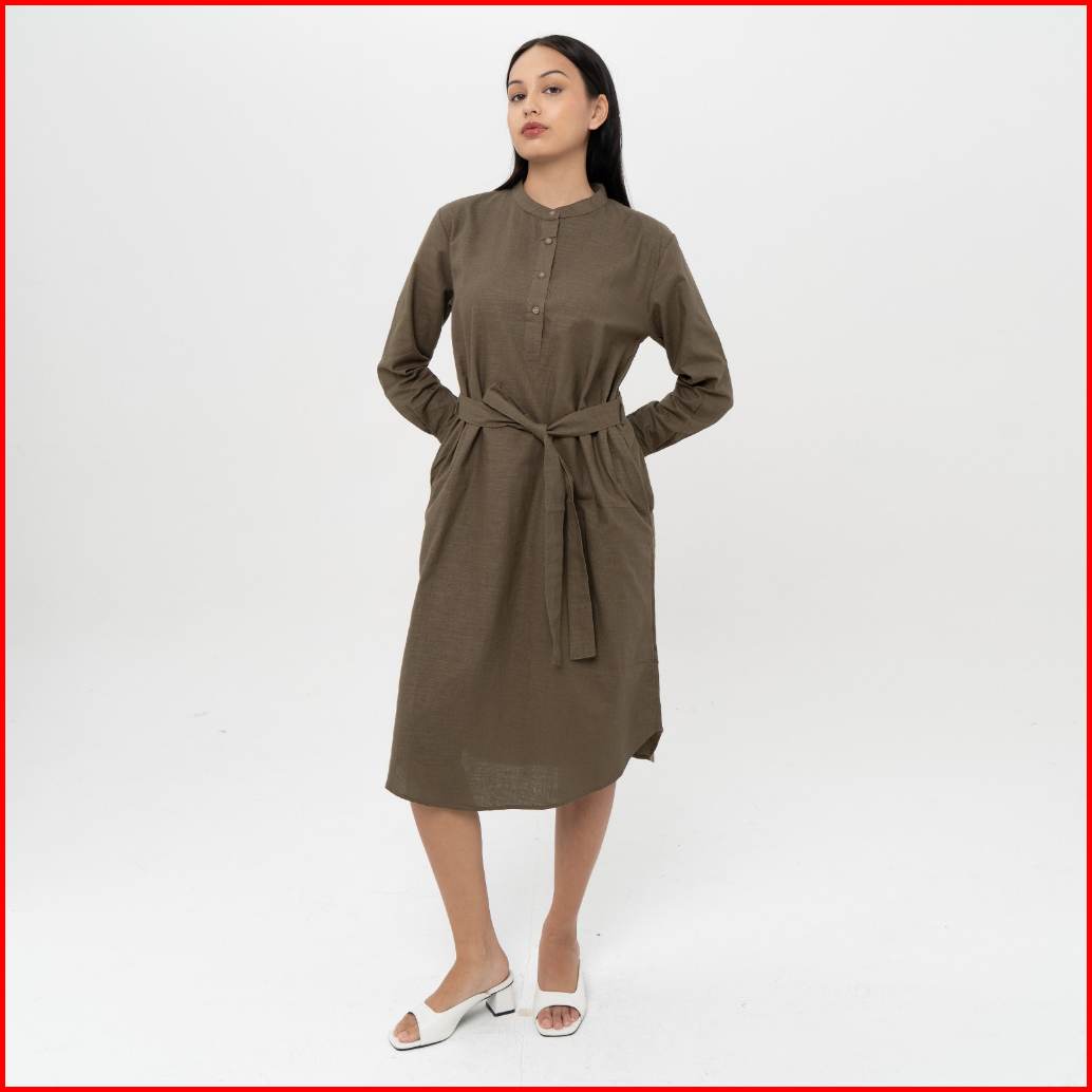 M231 Dress Kemeja Wanita Rami Ikat Pinggang Panjang Army 2784b