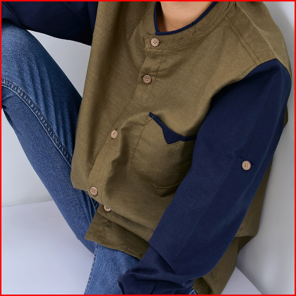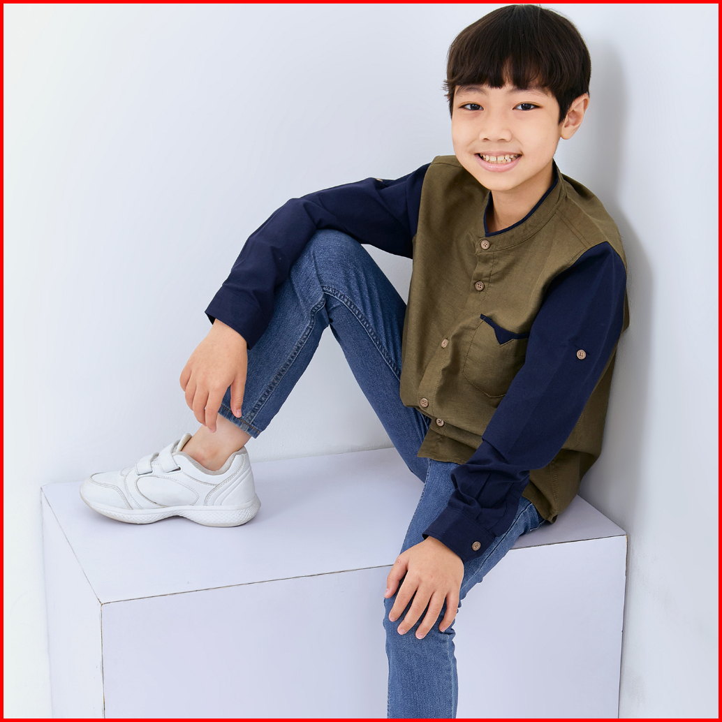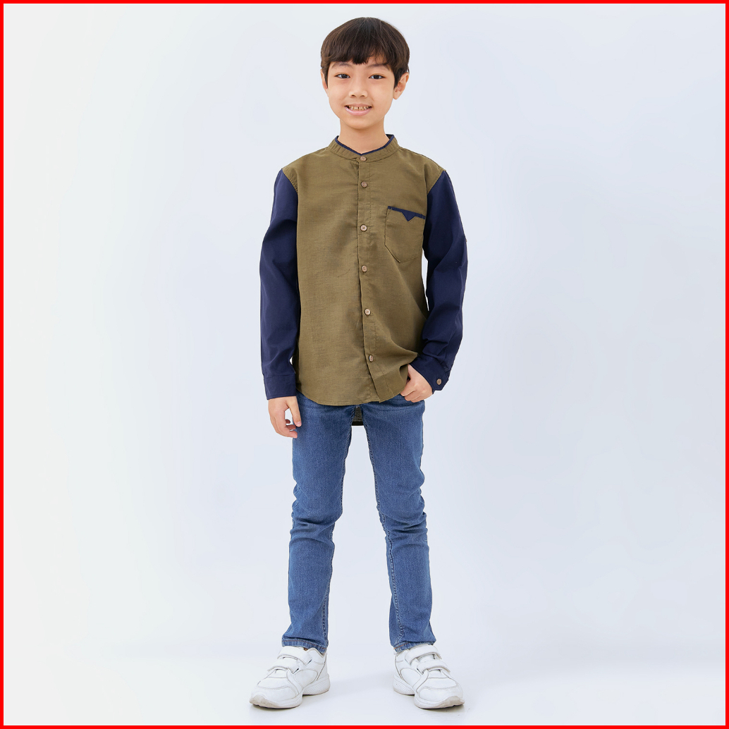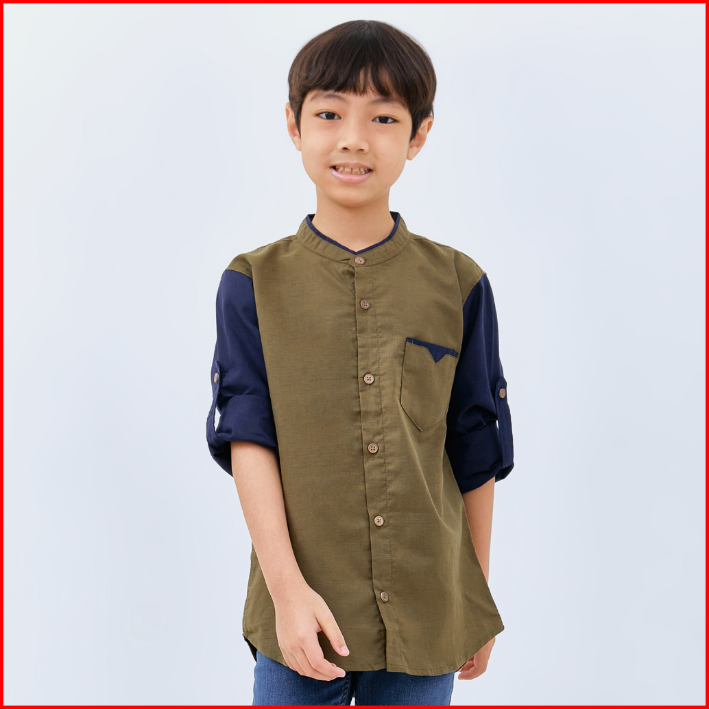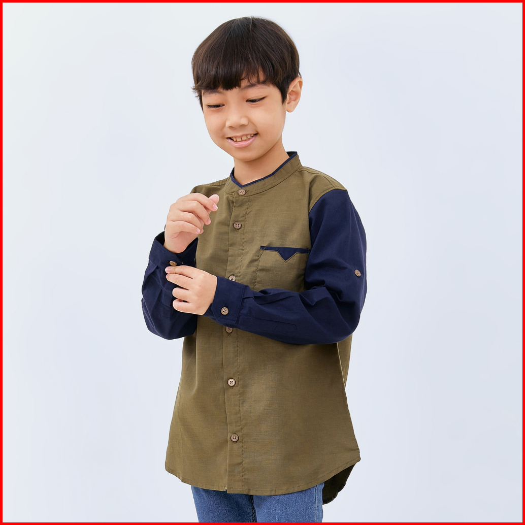 M231 Kemeja Anak Laki Laki Koko Shanghai Combination Panjang Army 2831c