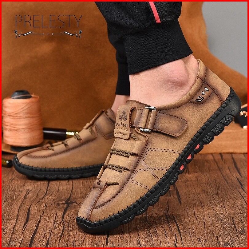 Kulit Sapi Asli Sepatu Santai Sneaker Olahraga Original Casual Cowok Kantor Sepatu Pria Keren Pantofel Pria Tanpa Tali 0