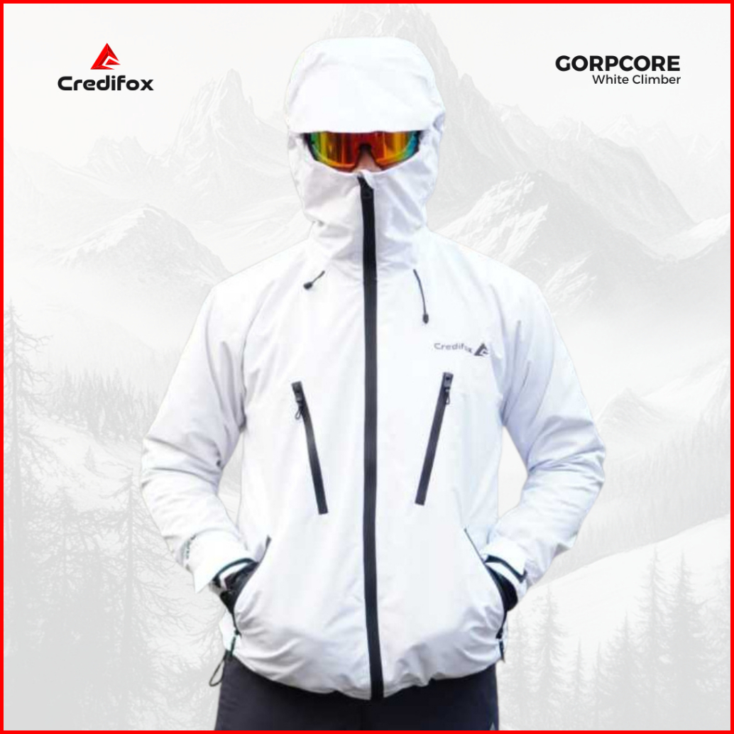 Credifox Jaket Gunung Gorpcore Seri Climber Putih Bahan Taslan Jn Premium - Gorpcore Jacket