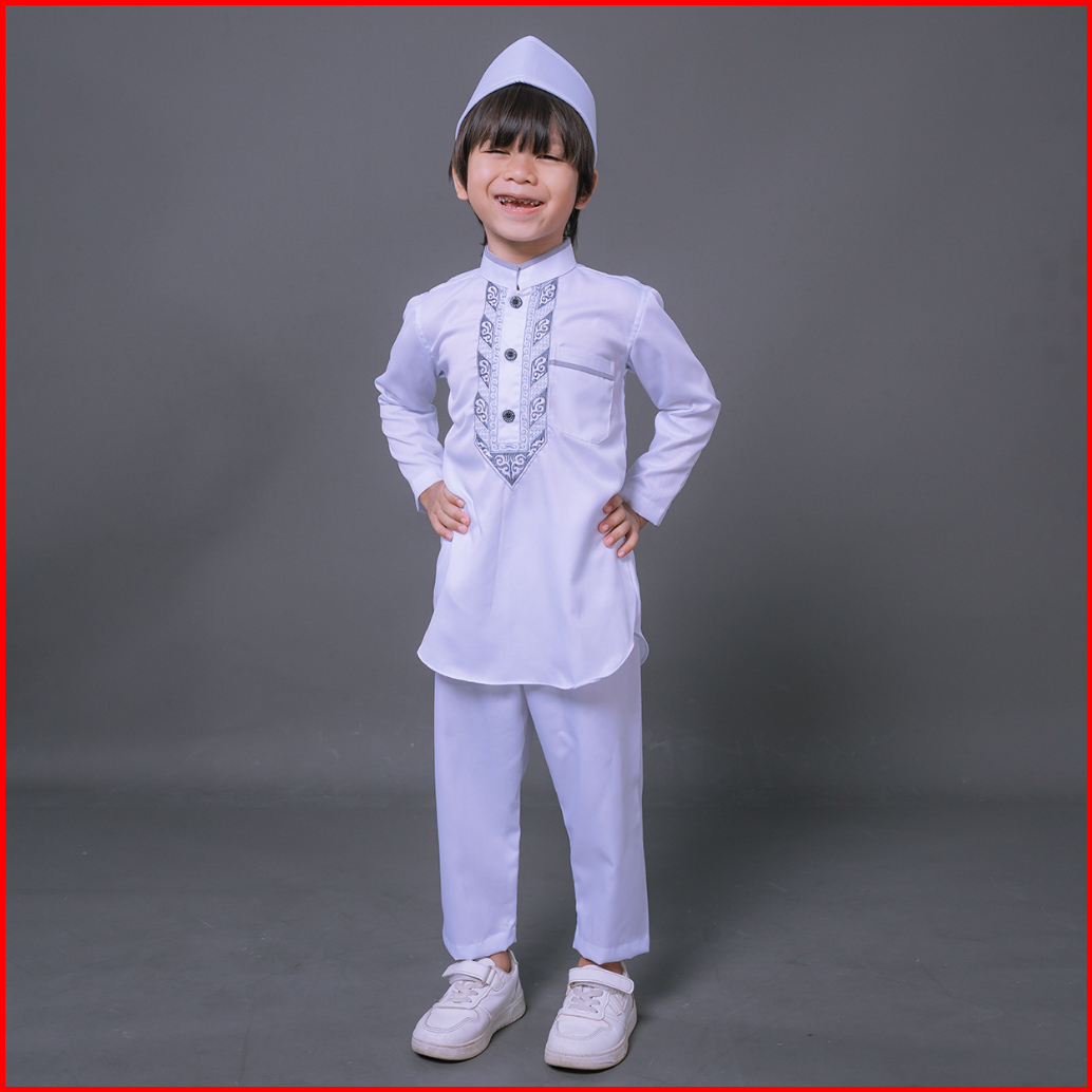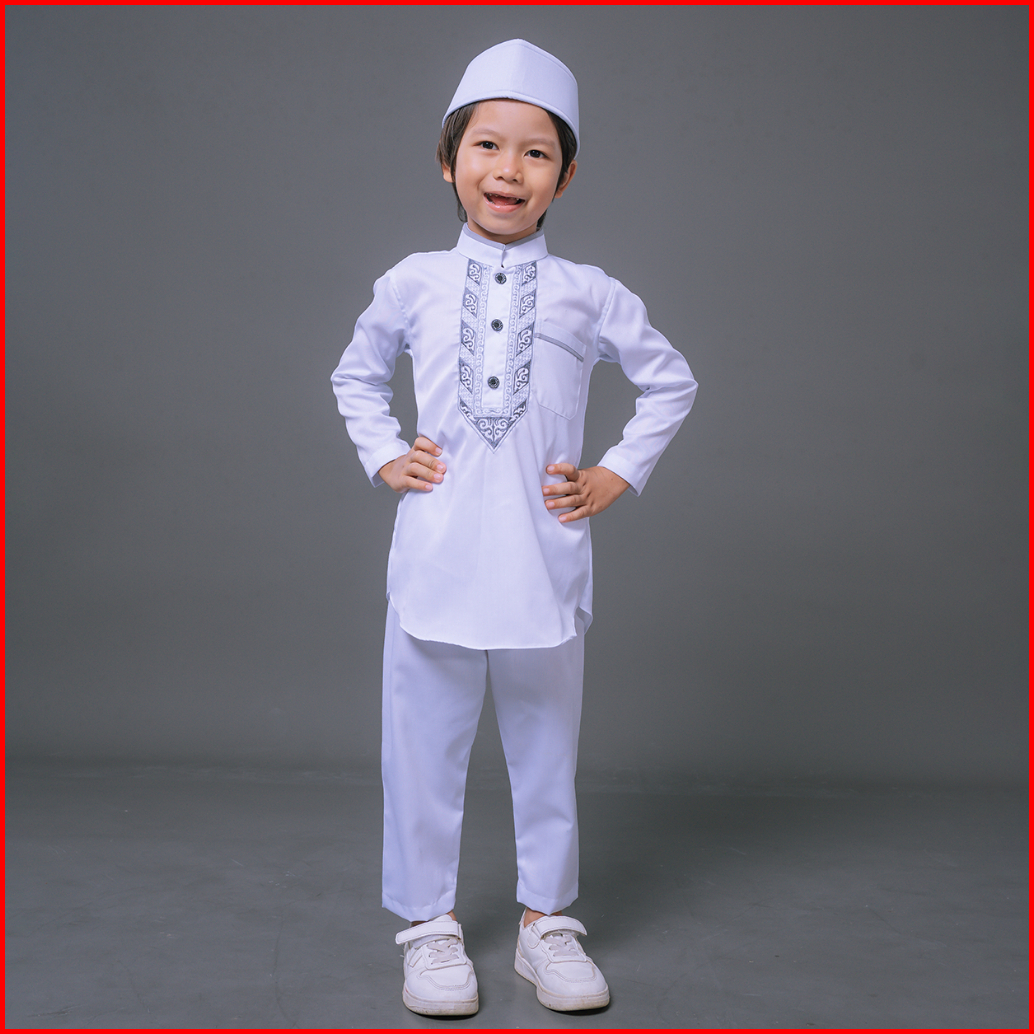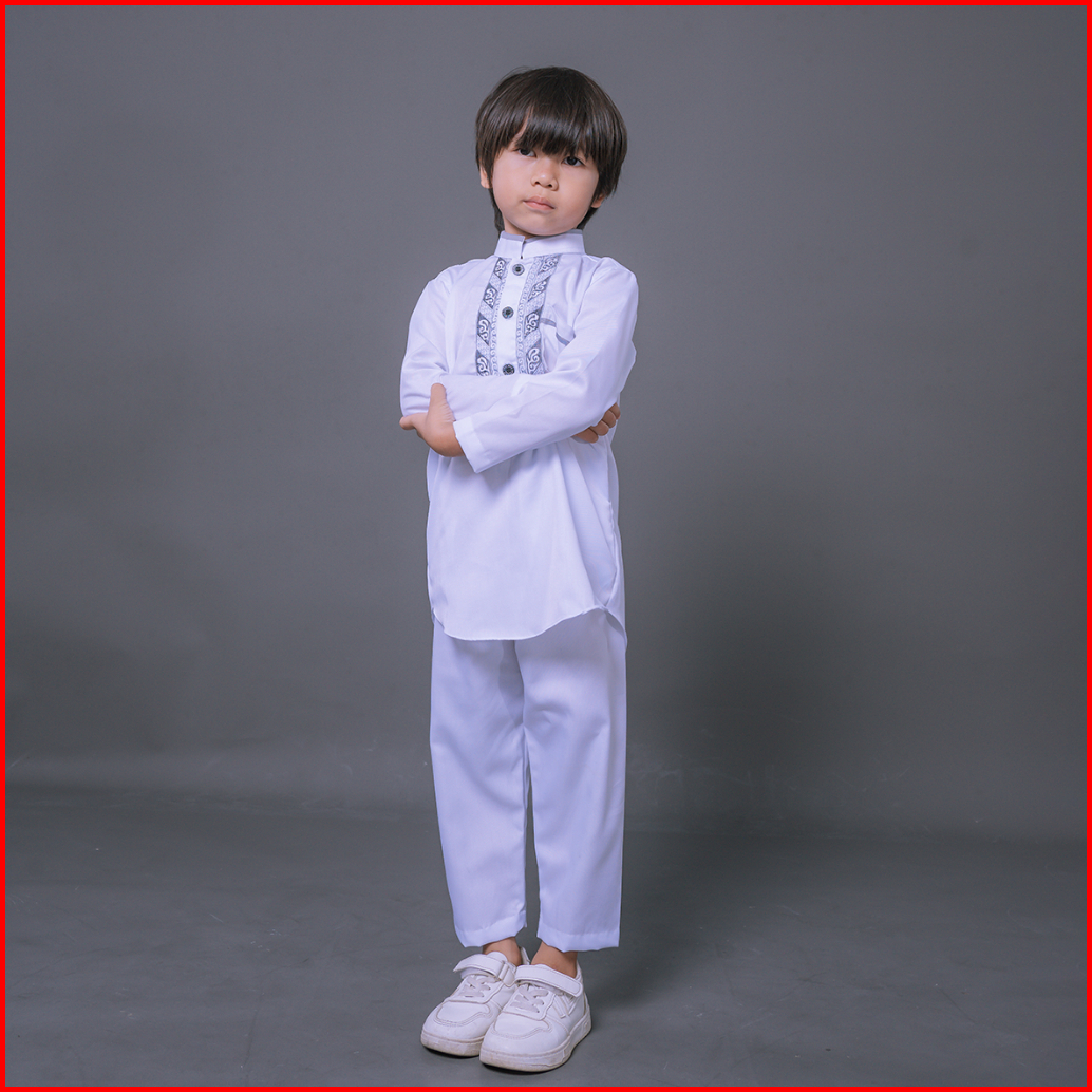 Kawan Muslim-baju Koko Setelan Motif Bordir Lengan Panjang Usia 1-12 Tahun Toyobo Premium Terbaru