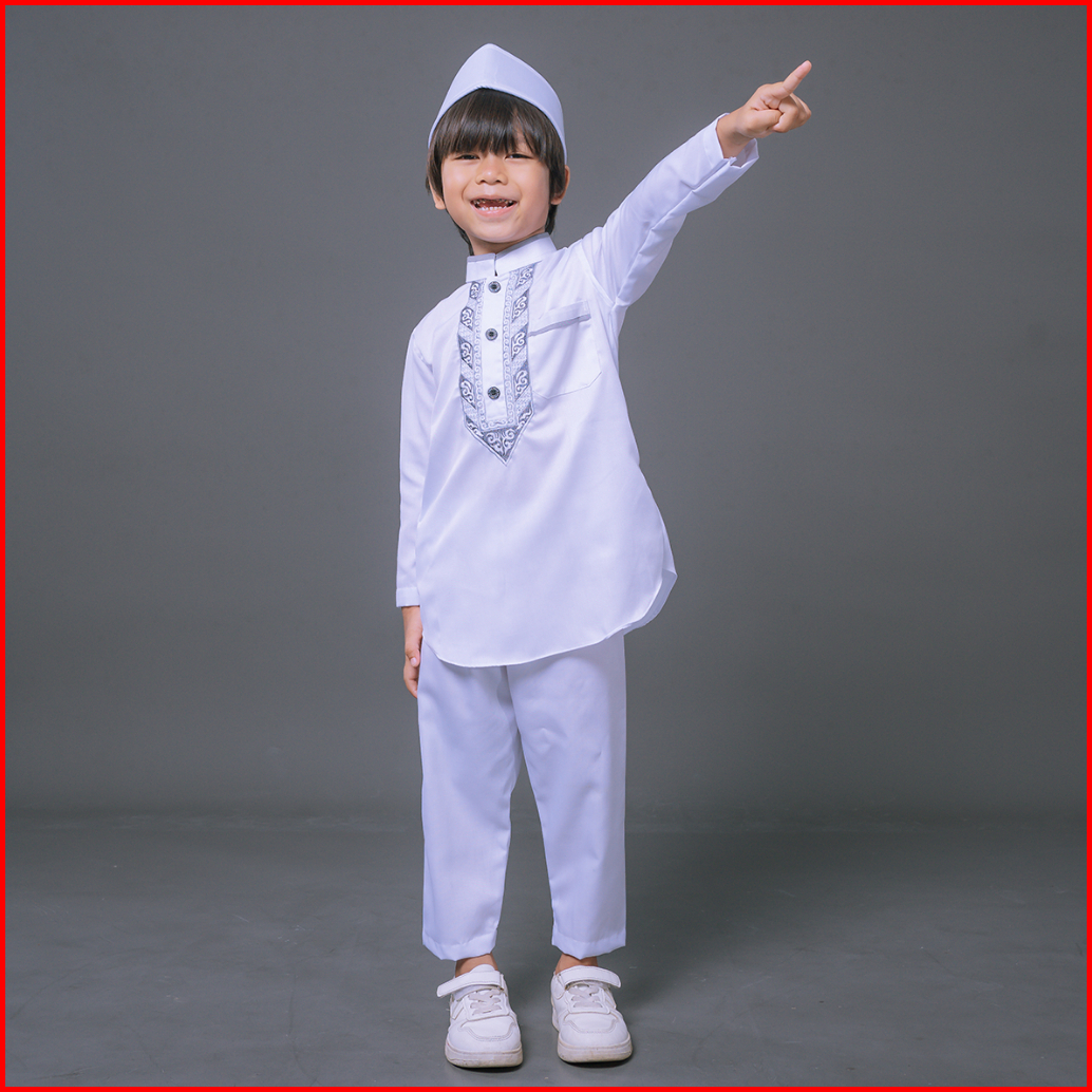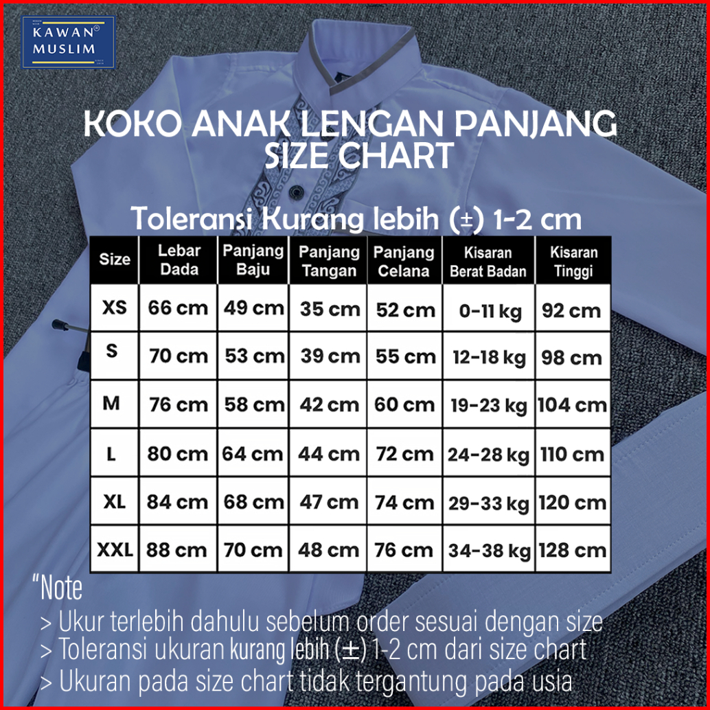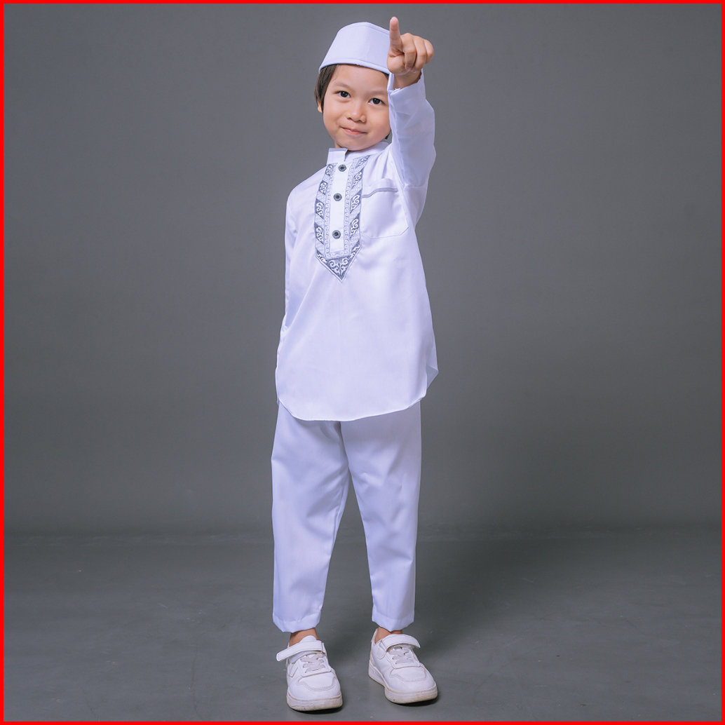 Kawan Muslim-baju Koko Setelan Motif Bordir Lengan Panjang Usia 1-12 Tahun Toyobo Premium Terbaru
