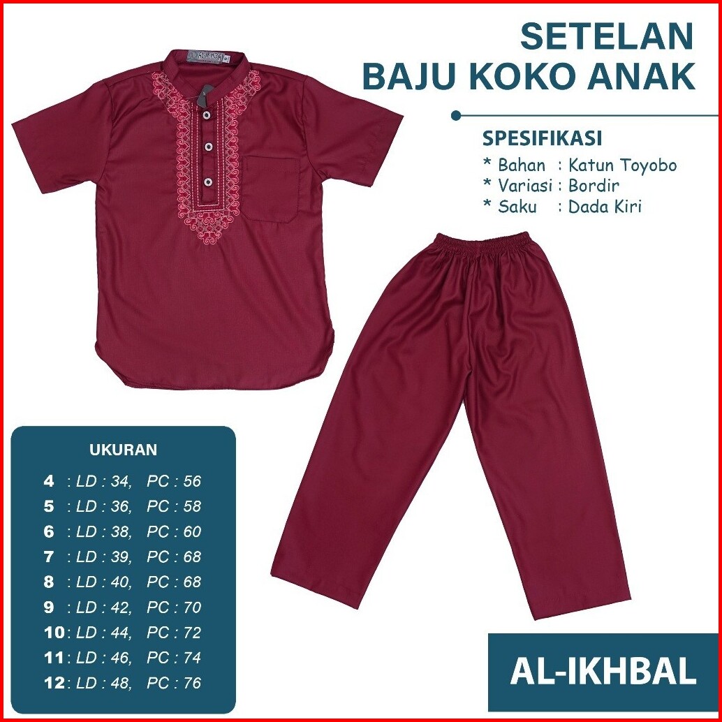 Setelan Baju Koko Lengan Pendek Anak Laki-laki Katun Toyobo