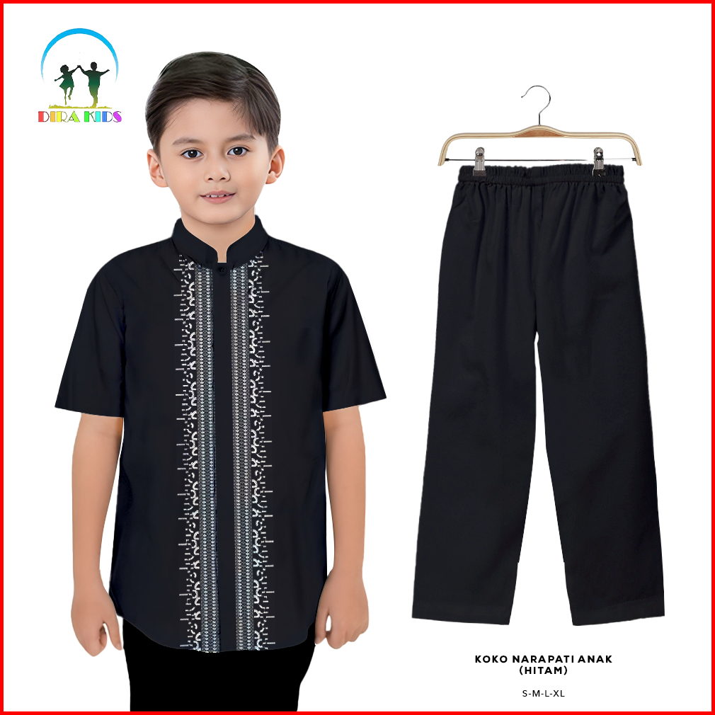 Dirakids Baju Set Koko Setelan Anak Laki-laki Full Bordir Premium Lengan Pendek Usia 4 - 13 Tahun Termurah Dan Terlaris