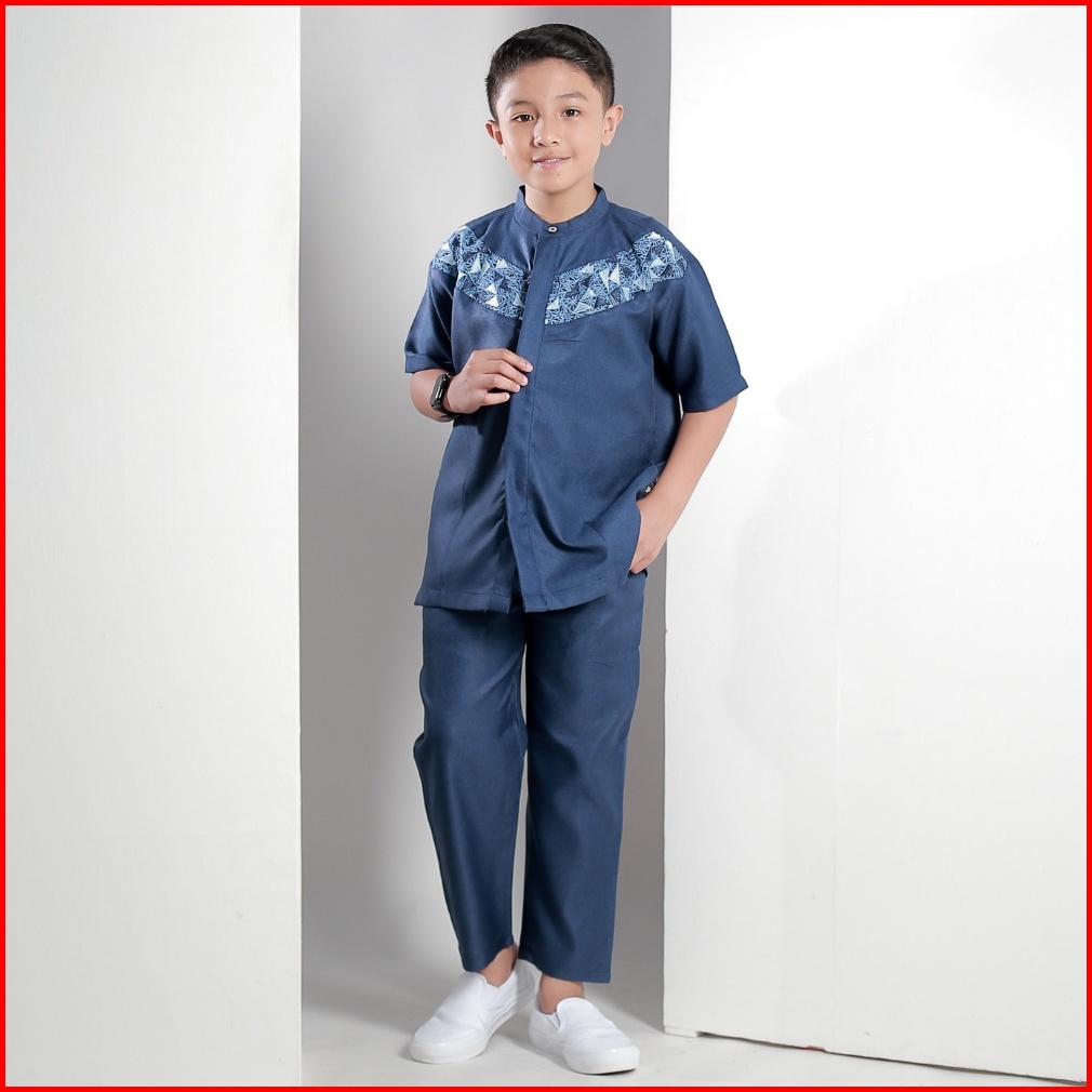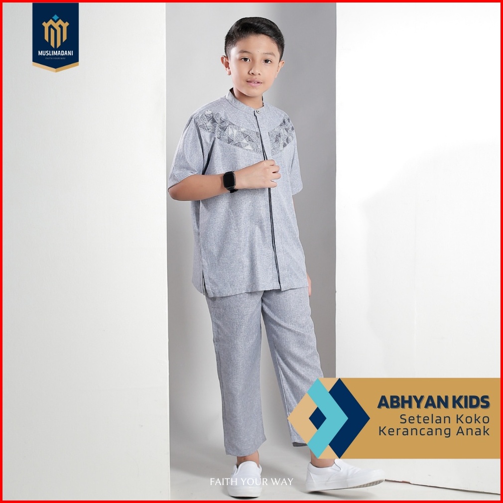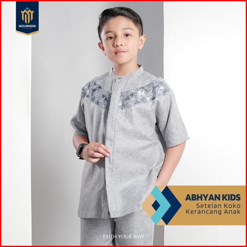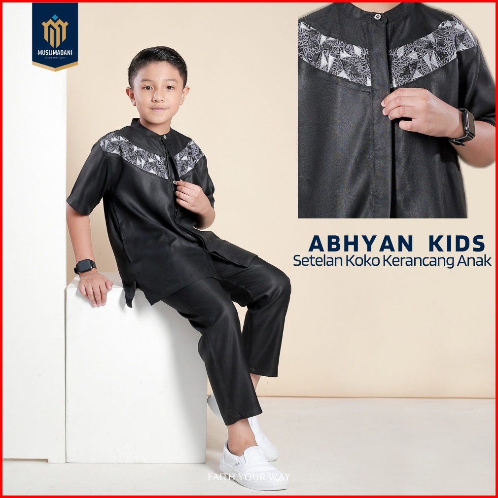 Muslimadani Koko Anak Setelan Abhyan Kids Baju Koko Bordir Kerancang Lengan Pendek