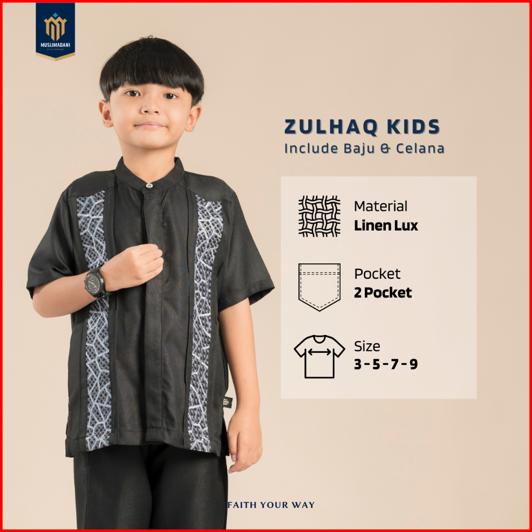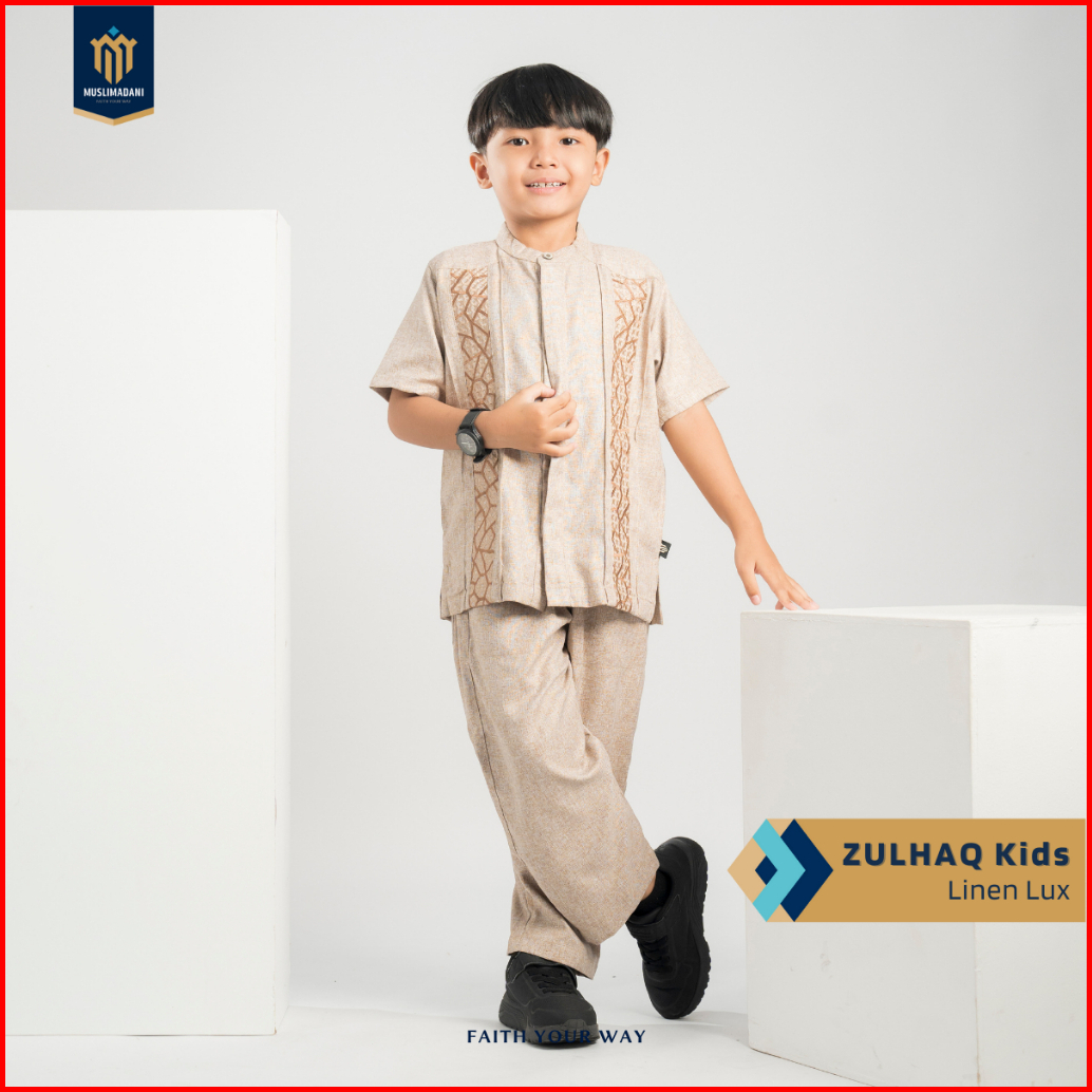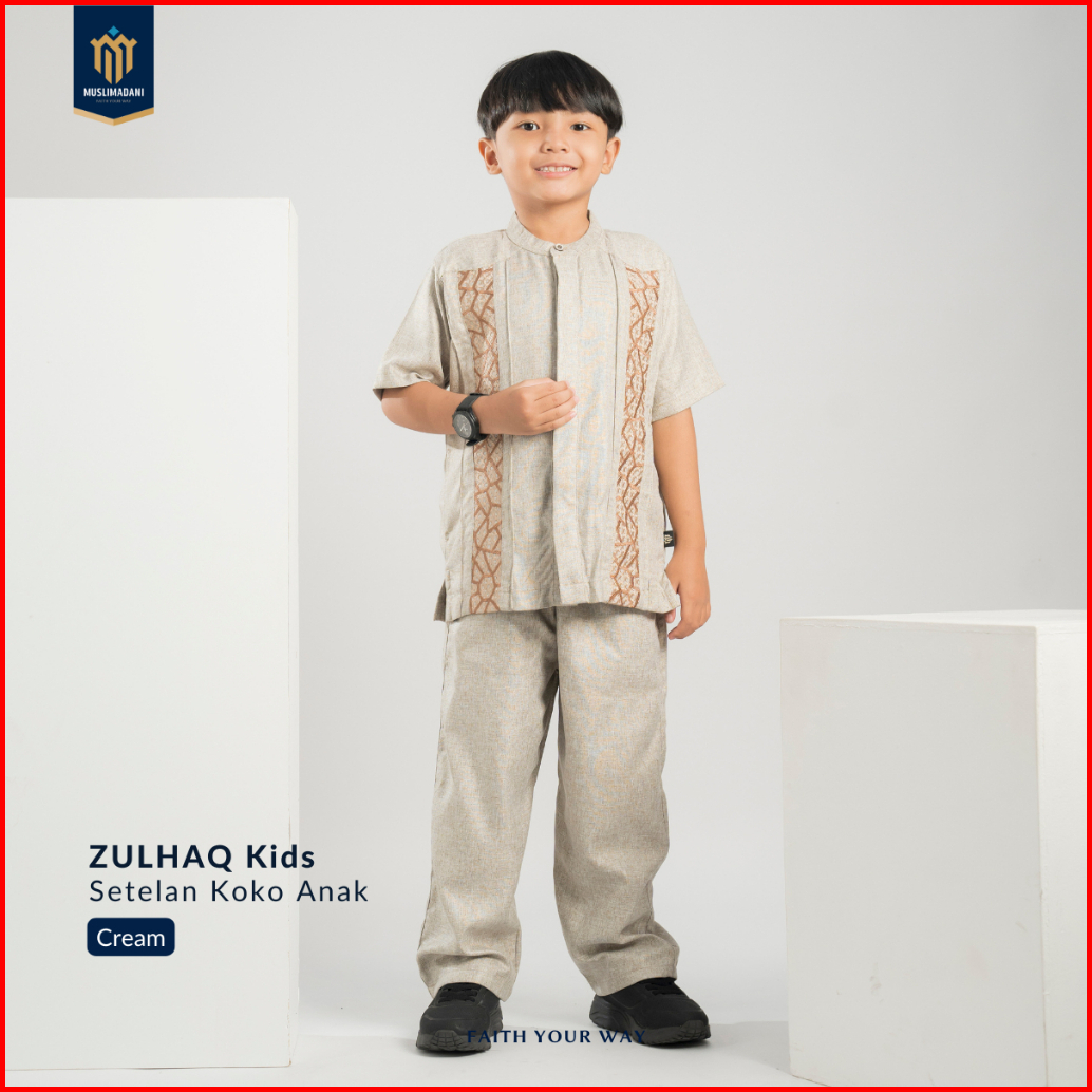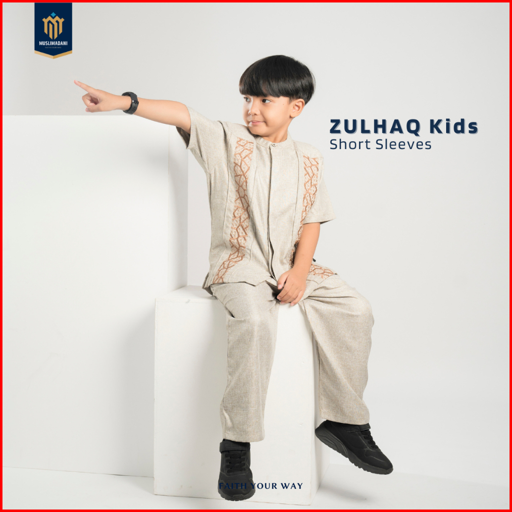 Muslimadani Setelan Baju Koko Anak Zulhaq Lengan Pendek Koko Muslim Anak Baju Lebaran Koko Couple Ayah Anak