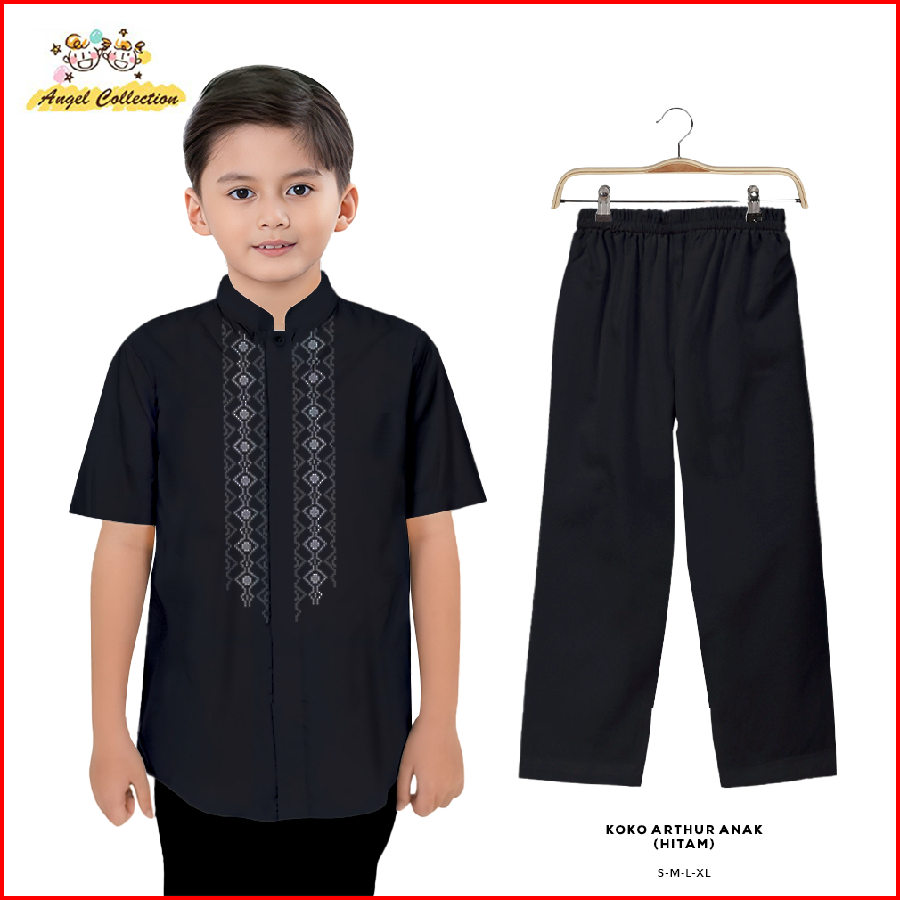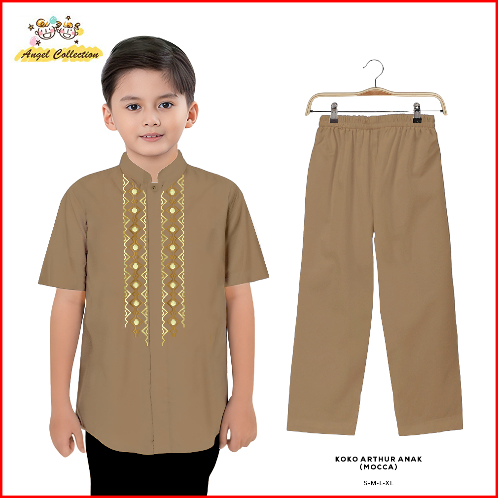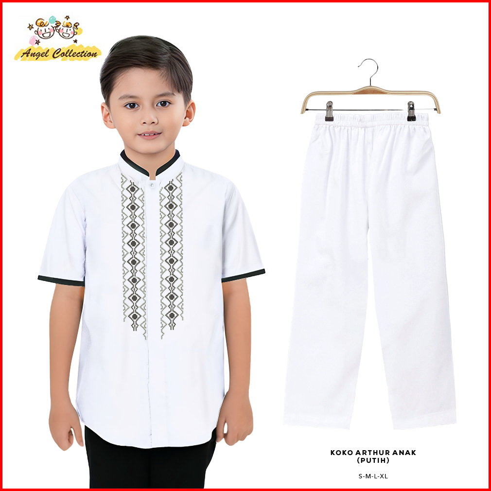 Uli Collection Koko Anak Laki-laki One Set Setelan Baju Muslim Lebaran Kombinasi Bordir Premium Lengan Pendek Terbaru Da
