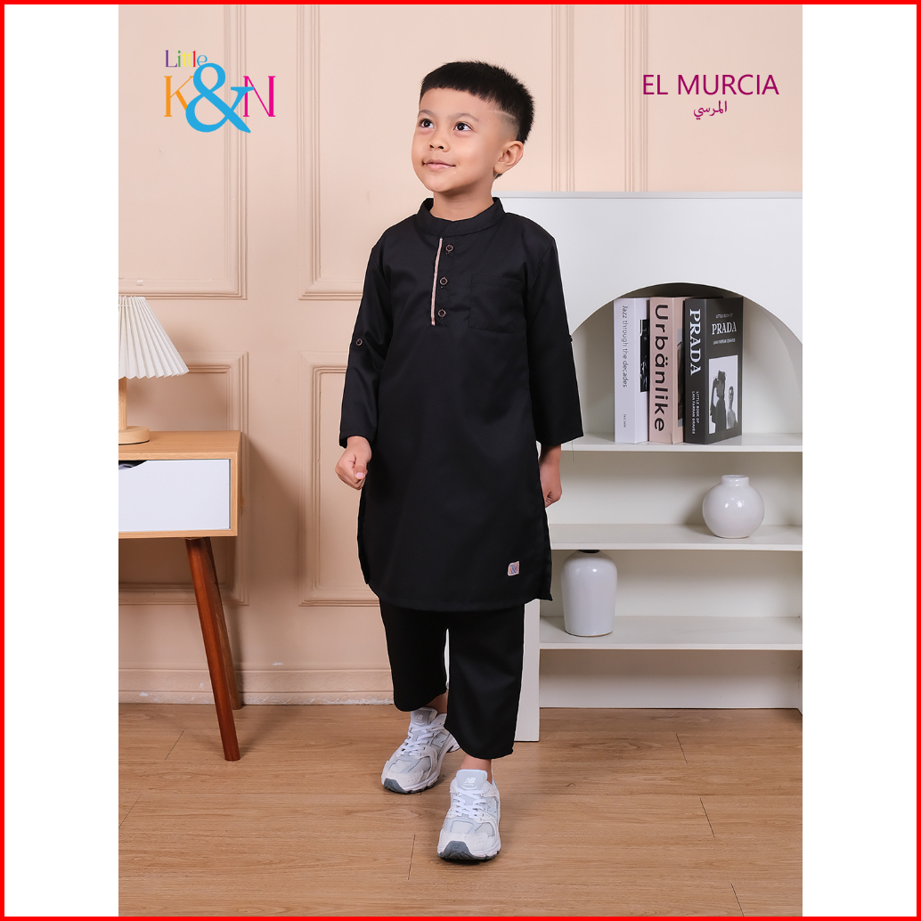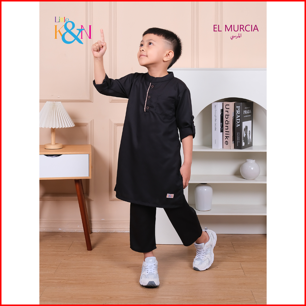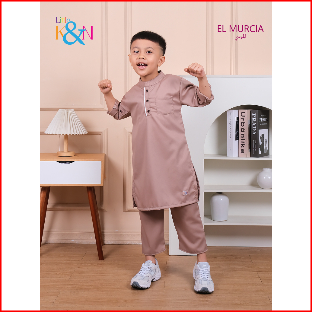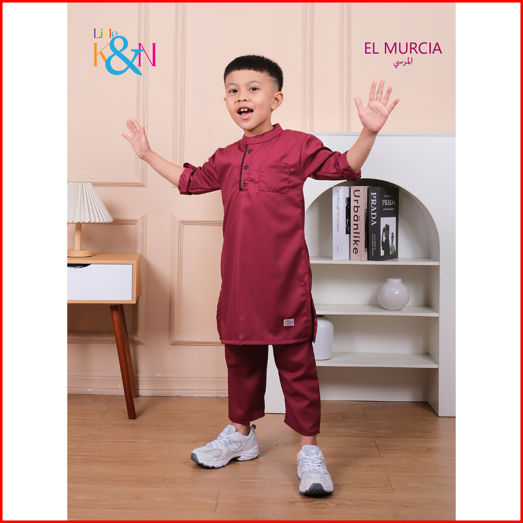 Little K N Kurta El Murcia Setelan Baju Koko Anak Laki Laki Usia 3-10 Tahun Lengan 3 4 Motif Polos