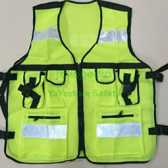 Rompi safety 6 kantong / rompi proyek jaring tebal termurah !! - Kuning