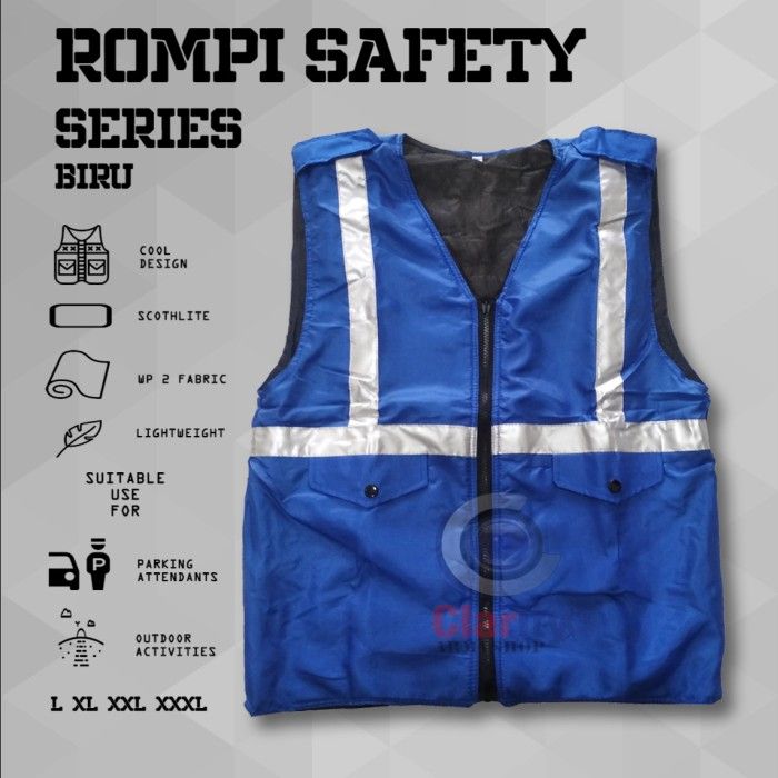 Rompi Safety/Rompi Parkir/Rompi Proyek/Rompi Kerja/Rompi Neon - Biru L