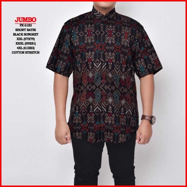 Dgm Fashion Kemeja Batik Big Size Lengan Pendek Songket Premium Jumbo 6086