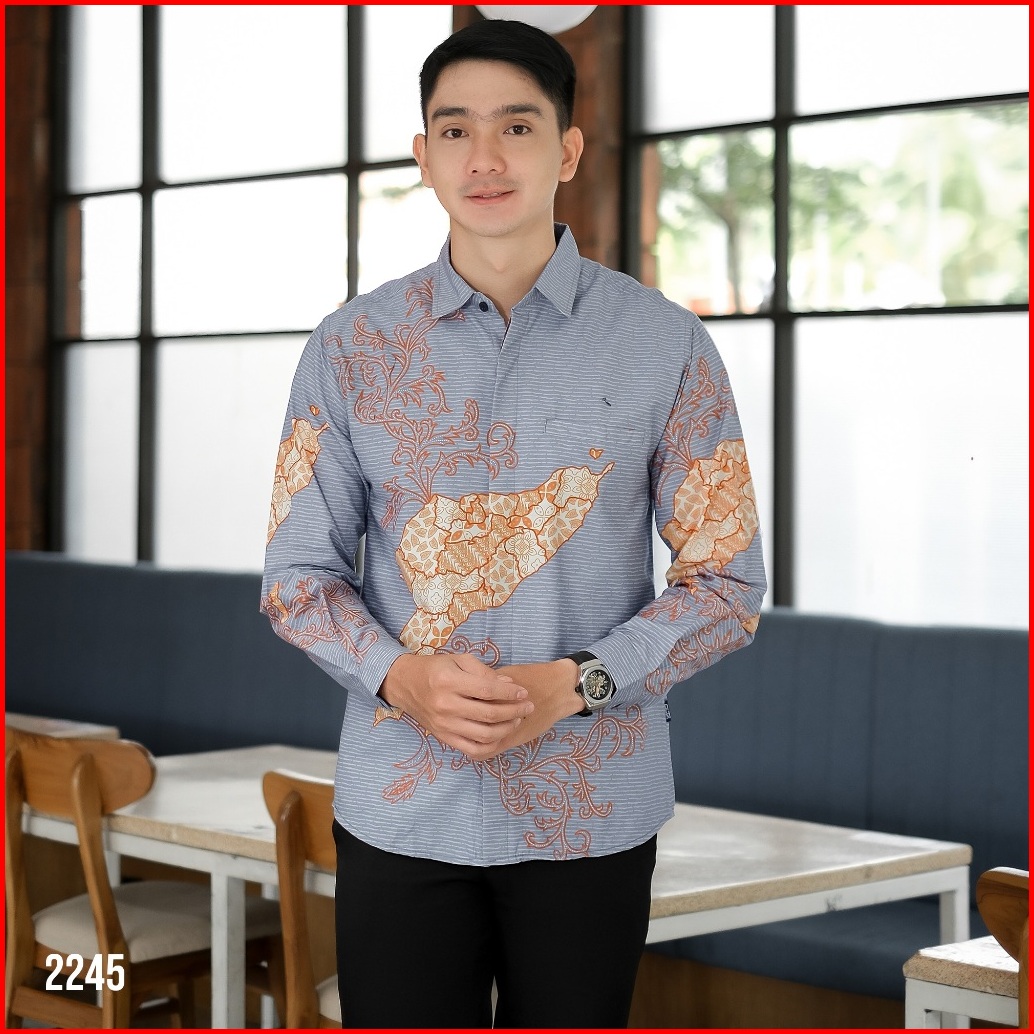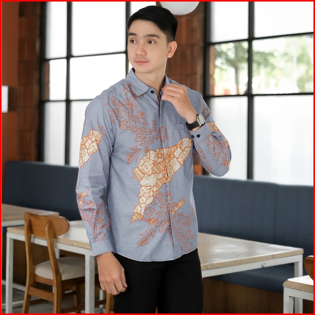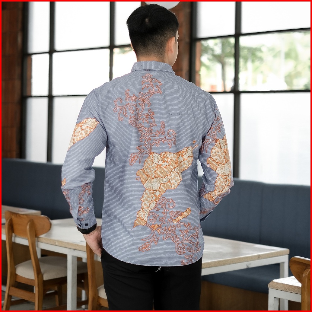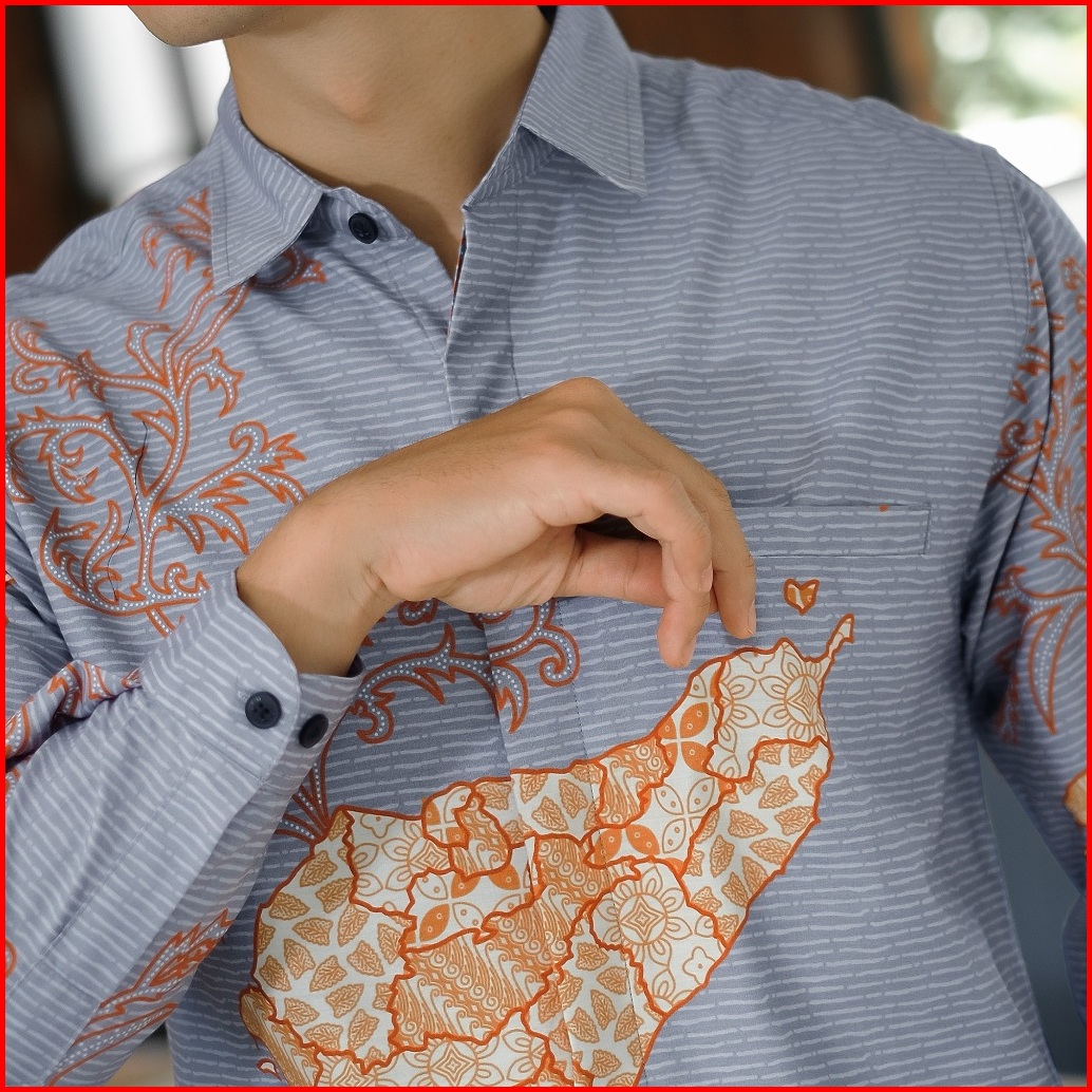 Dgm Batik Pria Abu Lapis Furing Lengan Panjang Premium Batik Furing Motif Pulau Abu 2245