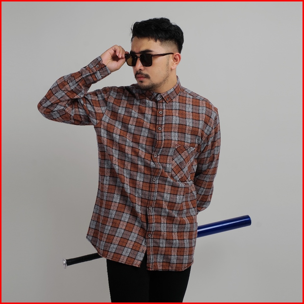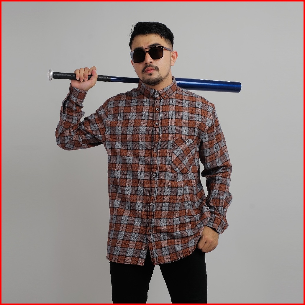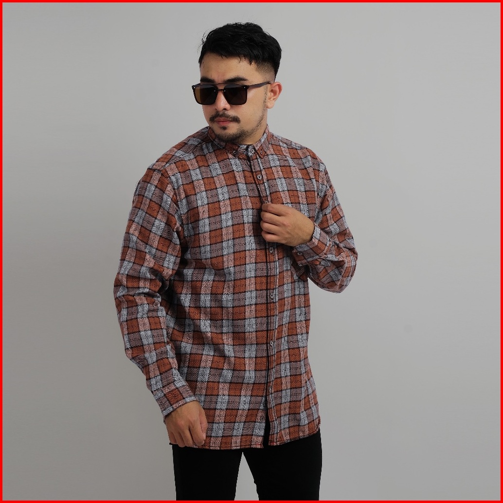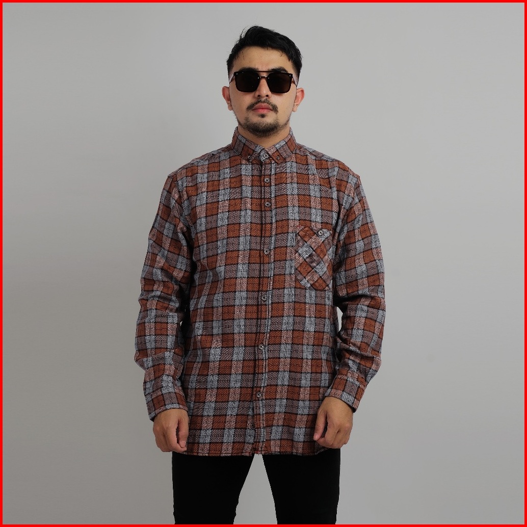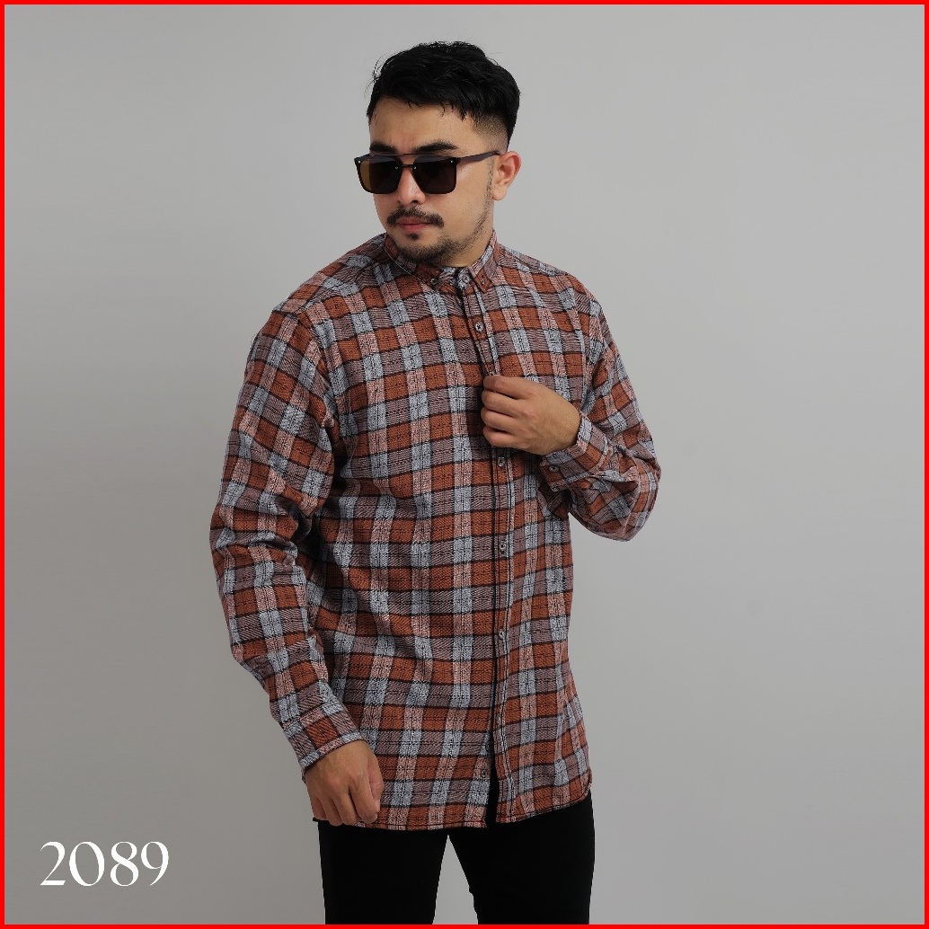 Dgm Kemeja Flanel Pria Lengan Panjang Casual Jumbo 2089