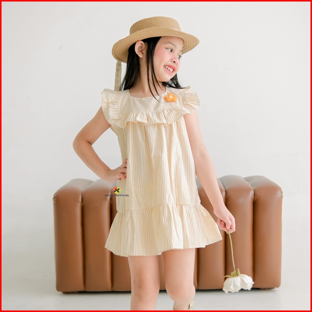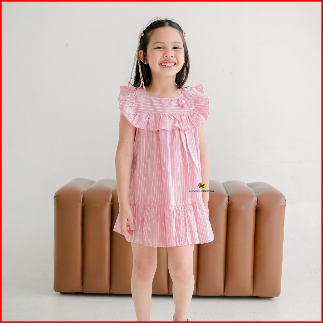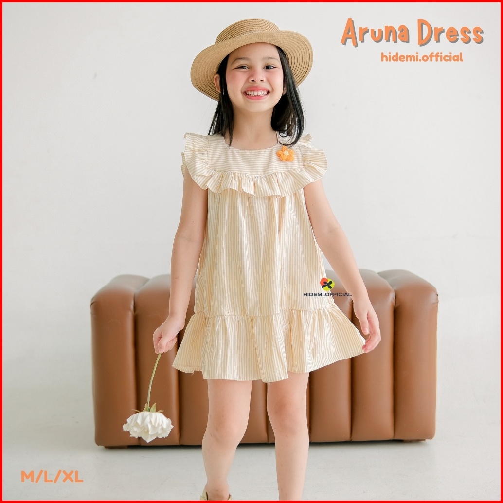 Aruna Dress Anak Wanita Perempuan Lengan Ruffle Bunga Baju Anak Salur H.32