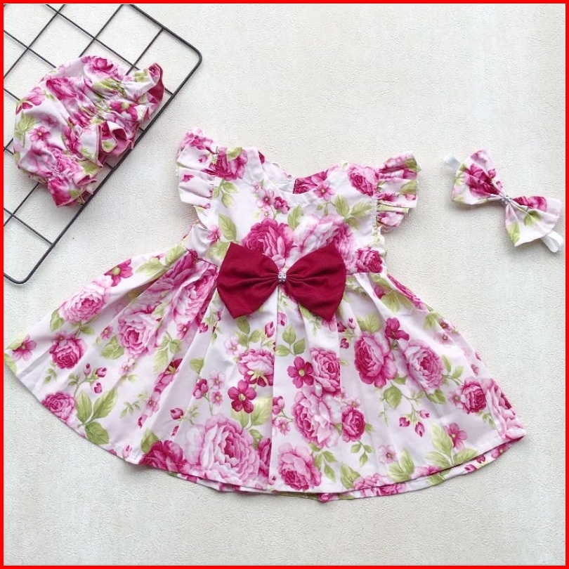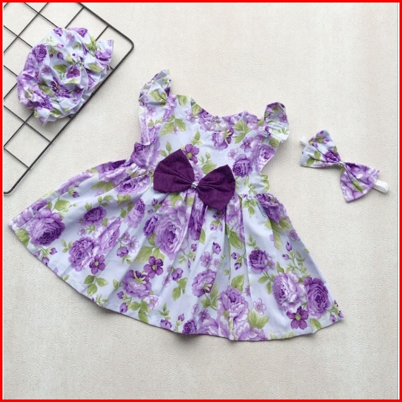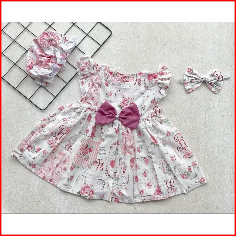 Arsy Dress Bayi Anak Perempuan Cewek Lucu Motif Free Bandana Dan Topi Bonet Usia Newborn 6 12 18 24 Bulan 1 2 Tahun Coco