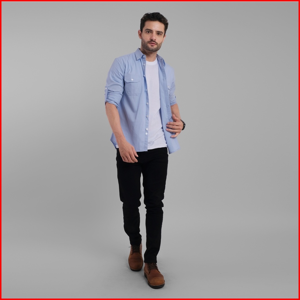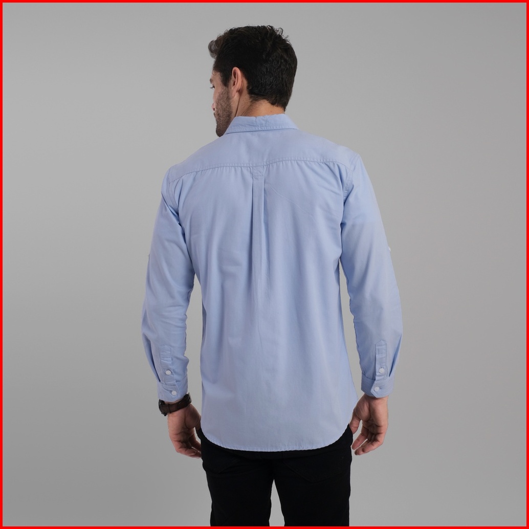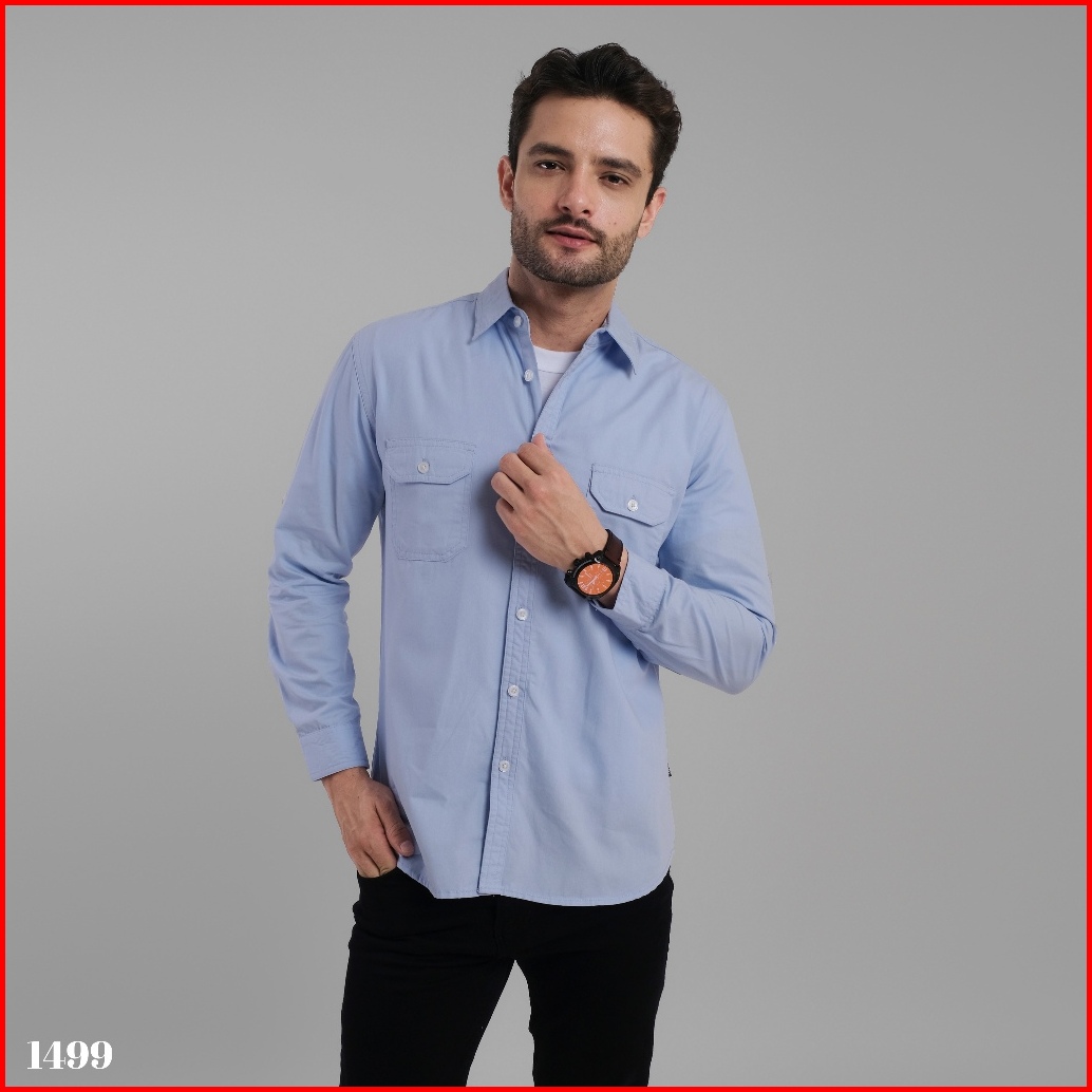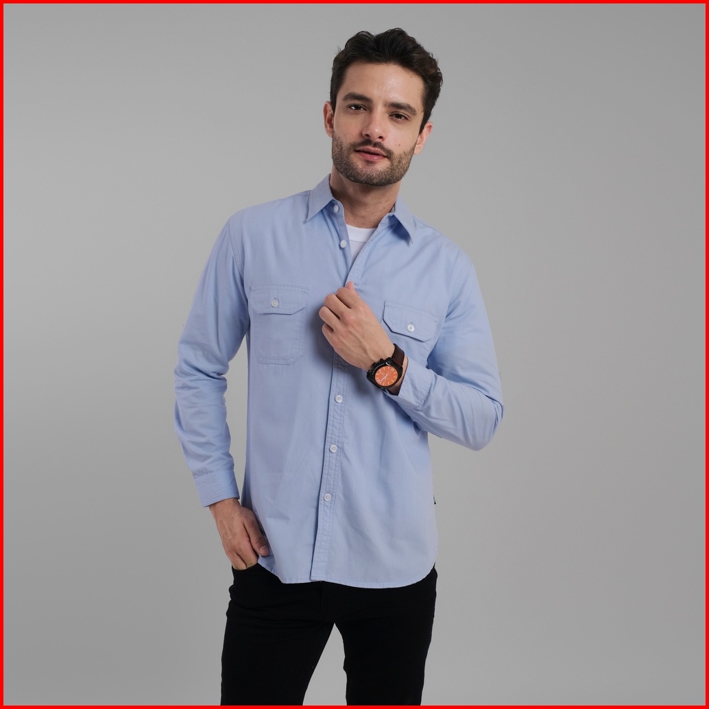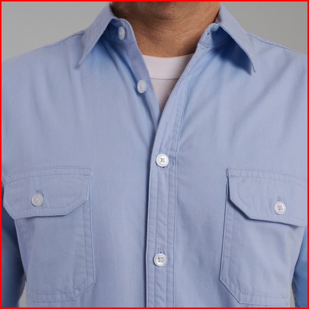 Dgm Kemeja Pria Lengan Panjang Polos Kemeja Polos Tactical Baby Canvas Blue Double Pocket 1499