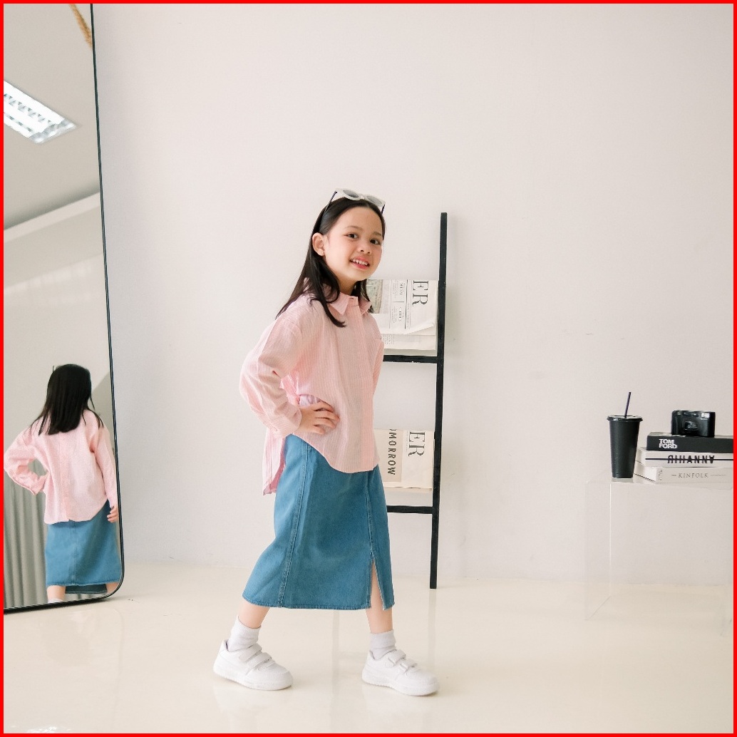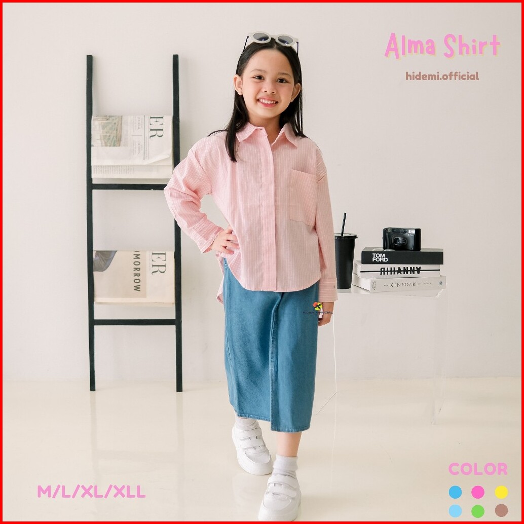 Alma Shirt Atasan Anak Perempuan L Kemeja Salur Series Bahan Katun L Kids Wear Shirt Stripe H.26