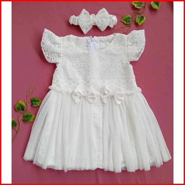 Dress Putih Anak Perempuan Dress Anak Full Brukat Dress Bayi Warna Putih