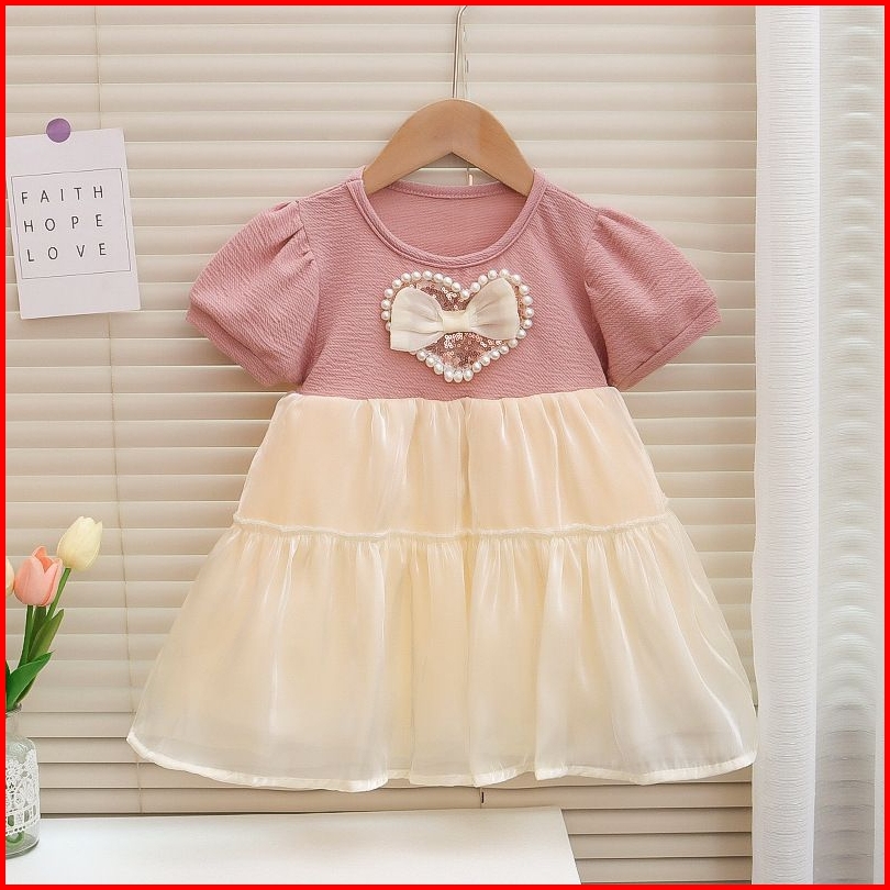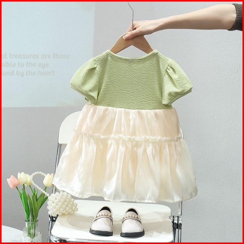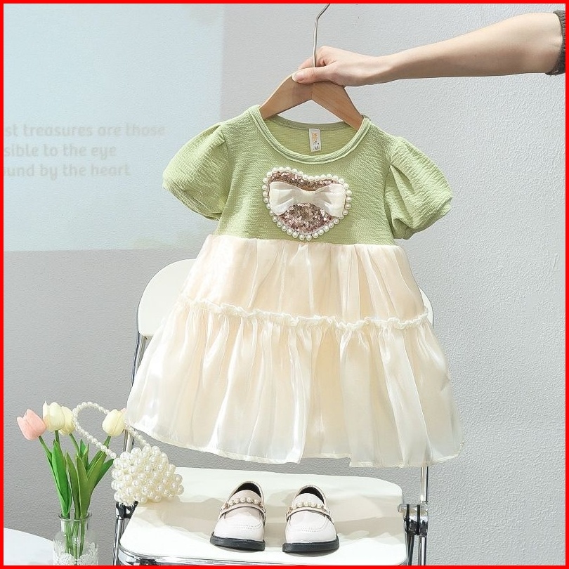 Dress Bayi-anak Perempuan Import Hijau Peach Os-733