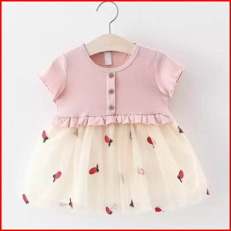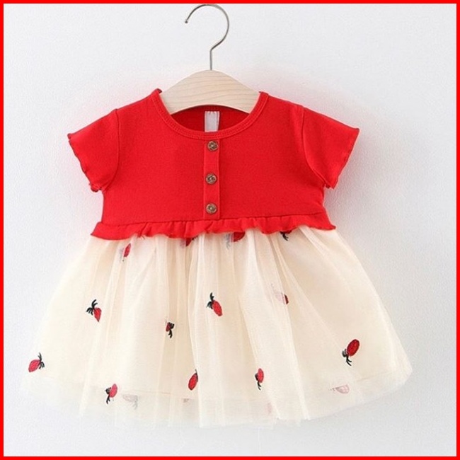 Incessbaby Gaun Baju Dress Anak Bayi Perempuan Import Korea Newborn Lengan Pendek Natal Merah