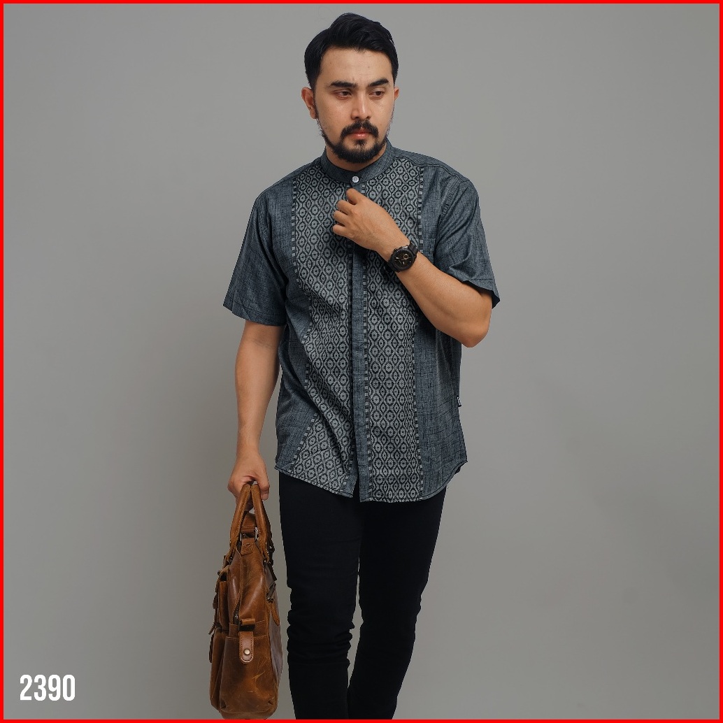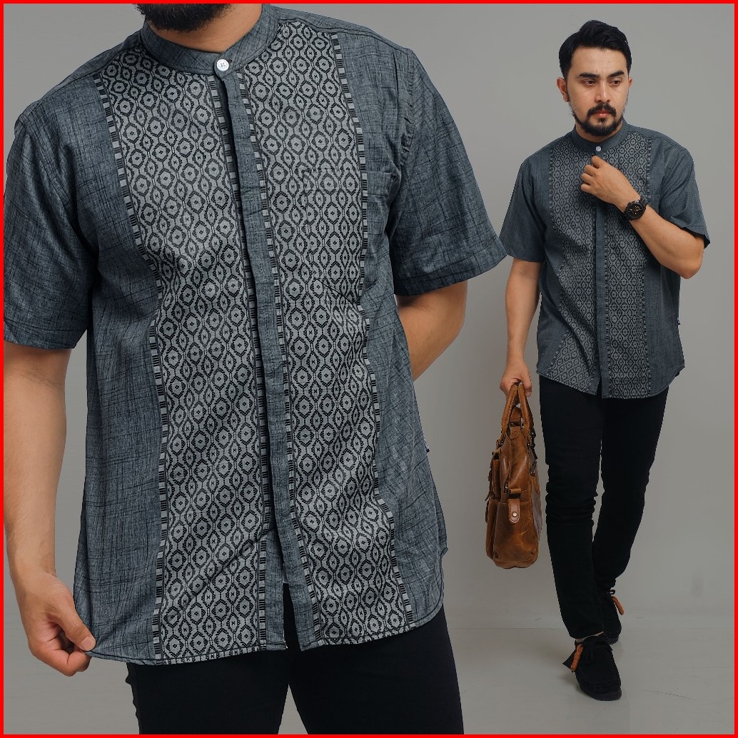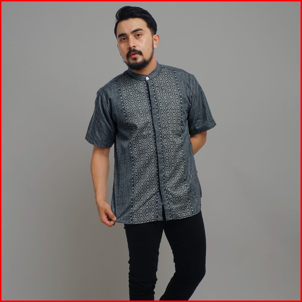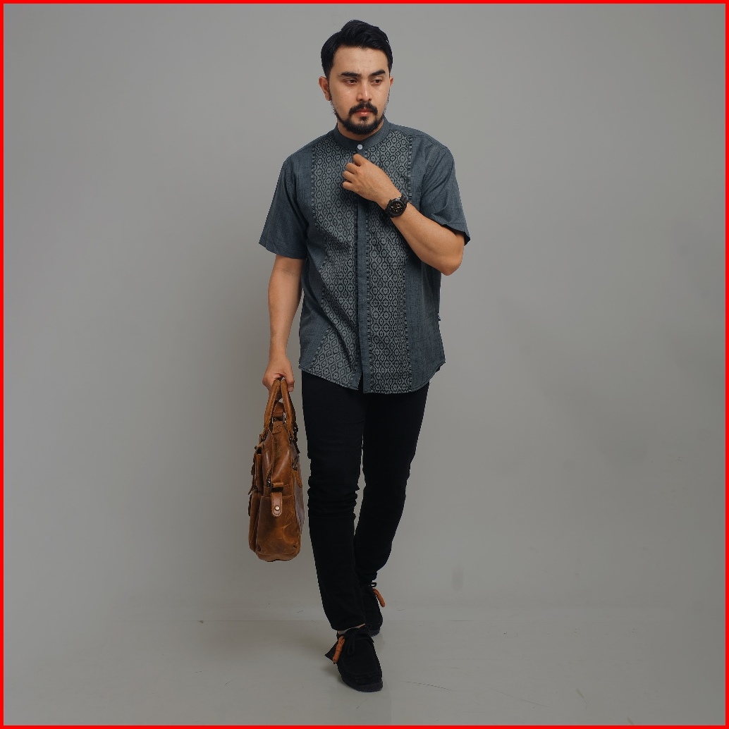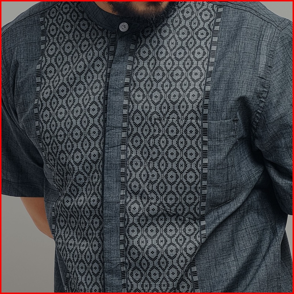 Dgm Kemeja Pria Koko Dark Slate Gray Bordir Lengan Pendek Motif Argyle Lingkaran 2390