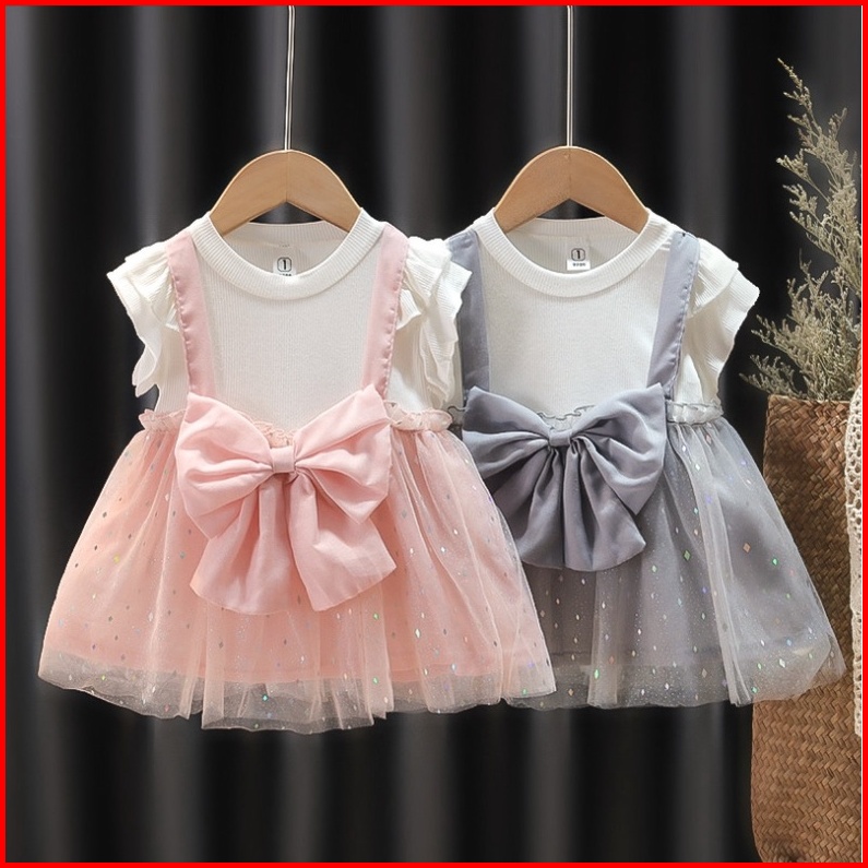 722-new Dress Bayi Baju Dress Anak Pakaian Pakaian Bayi Anak Perempuan Motif Pita