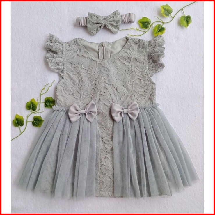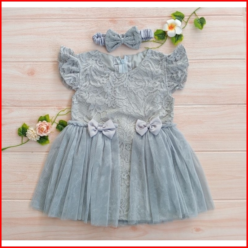 Dress Tille Newborn Dress Pesta Bayi Dress Anak Perempuan Warna Silver