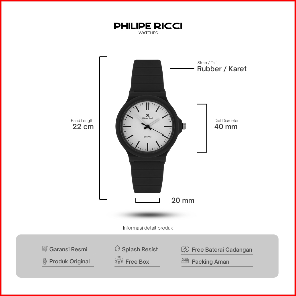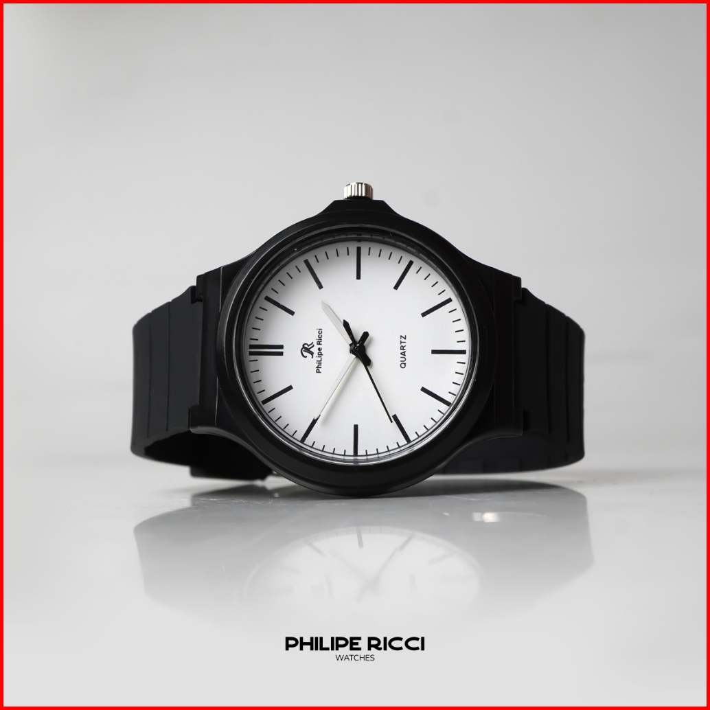 Philipe Ricci Jam Tangan Pria Karet Hitam Tipis Simple Keren Analog Ori 88a Men Watches Free Box