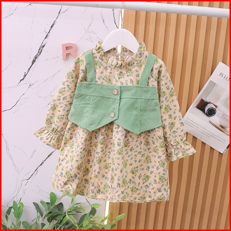 Dress Bayi-anak Perempuan Import Hijau-orange Os-699