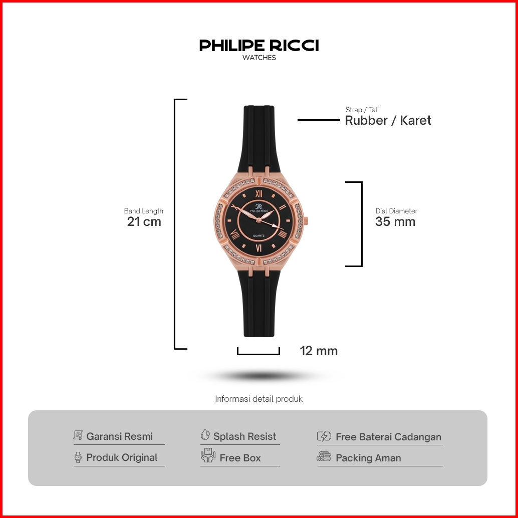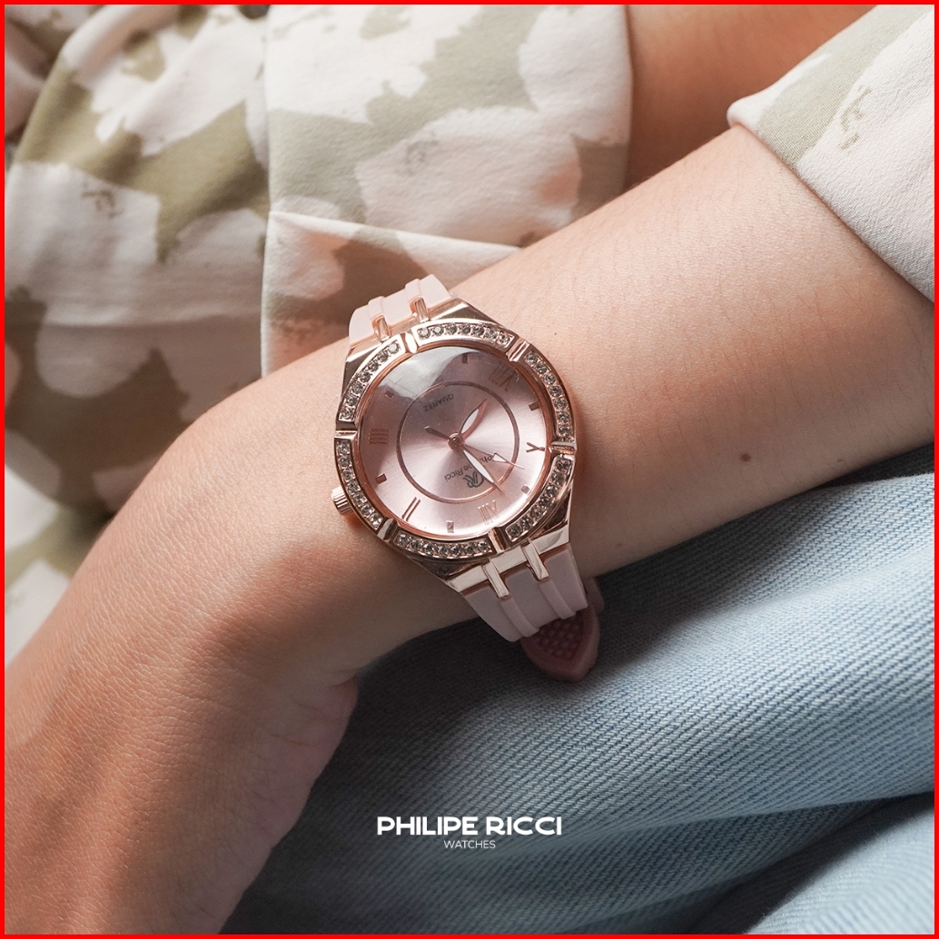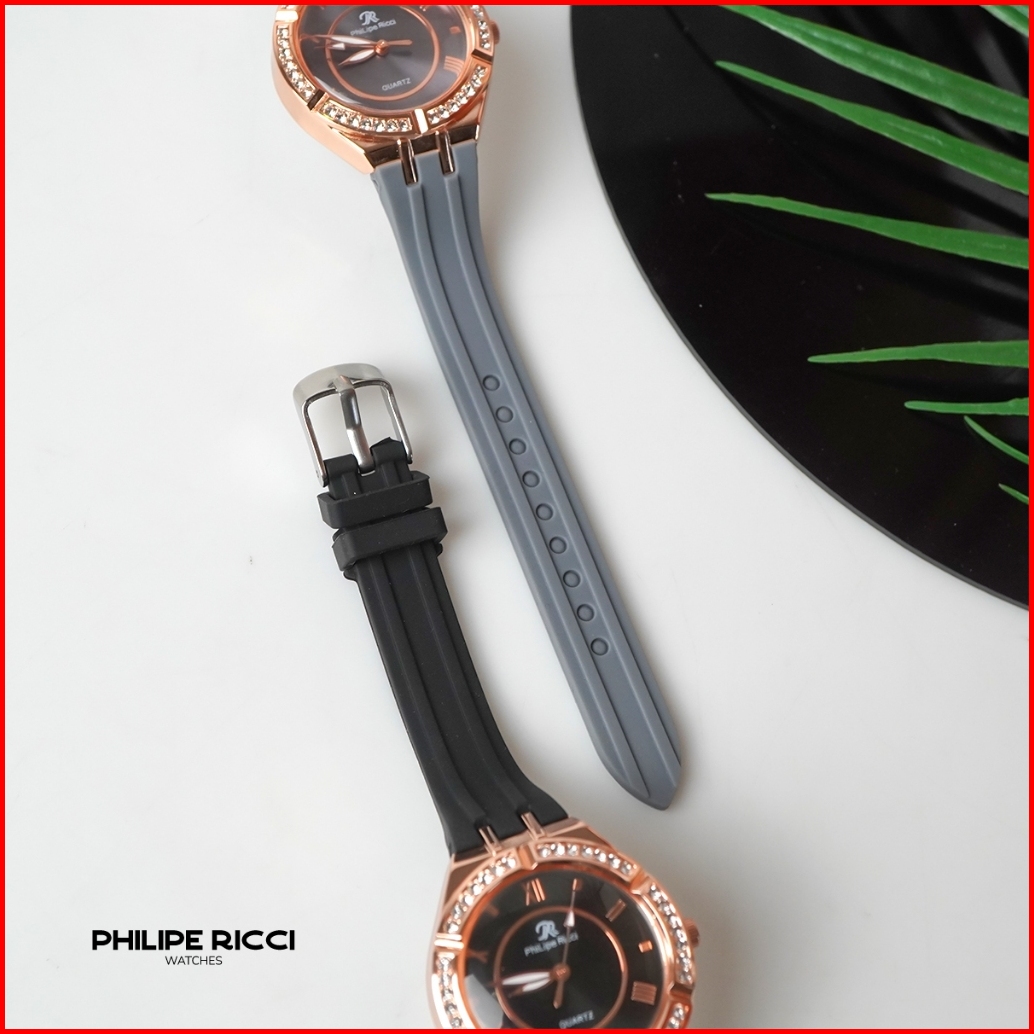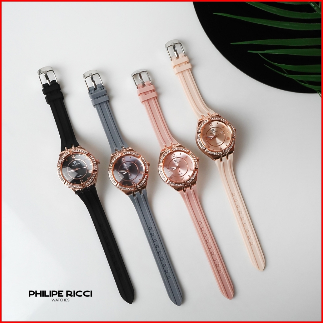 Philipe Ricci Jam Tangan Wanita Karet Stylish Terbaru Ori Simple Korea Kekinian 8516 Free Baterai