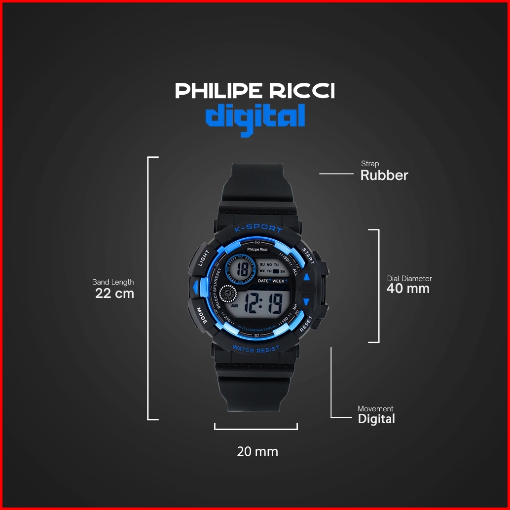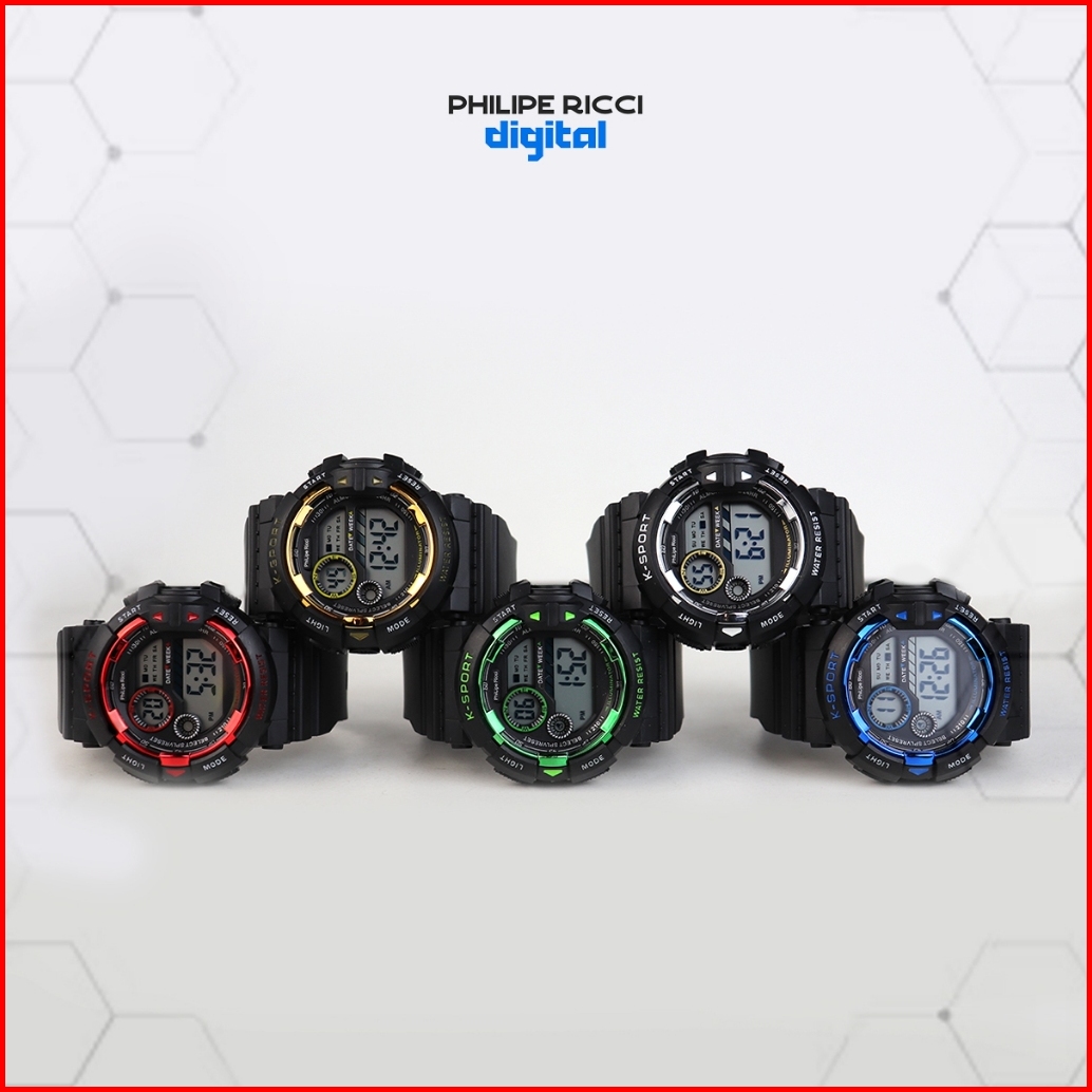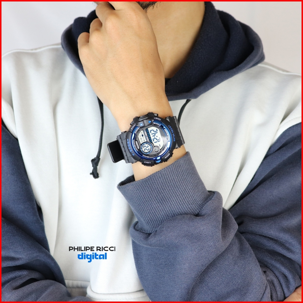 Philipe Ricci Digital Jam Tangan Pria Wanita Anti Air Unisex Diameter Bulat Modern Strap Rubber Desain Simpel Kekinian F
