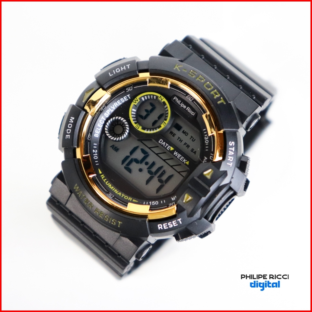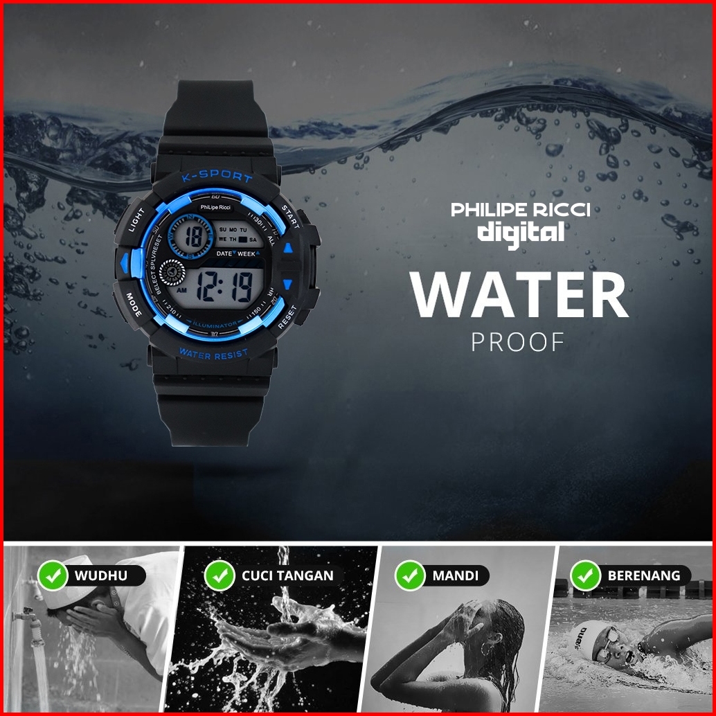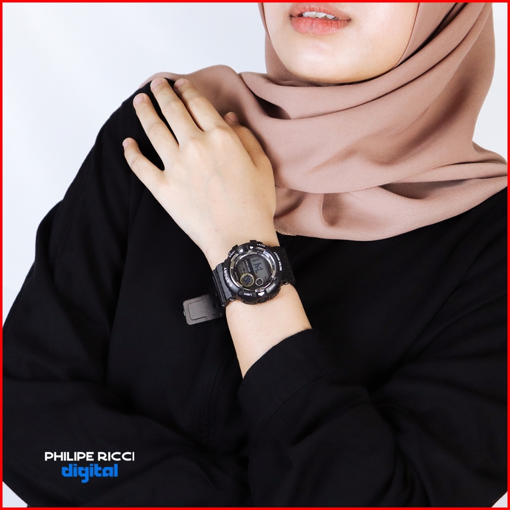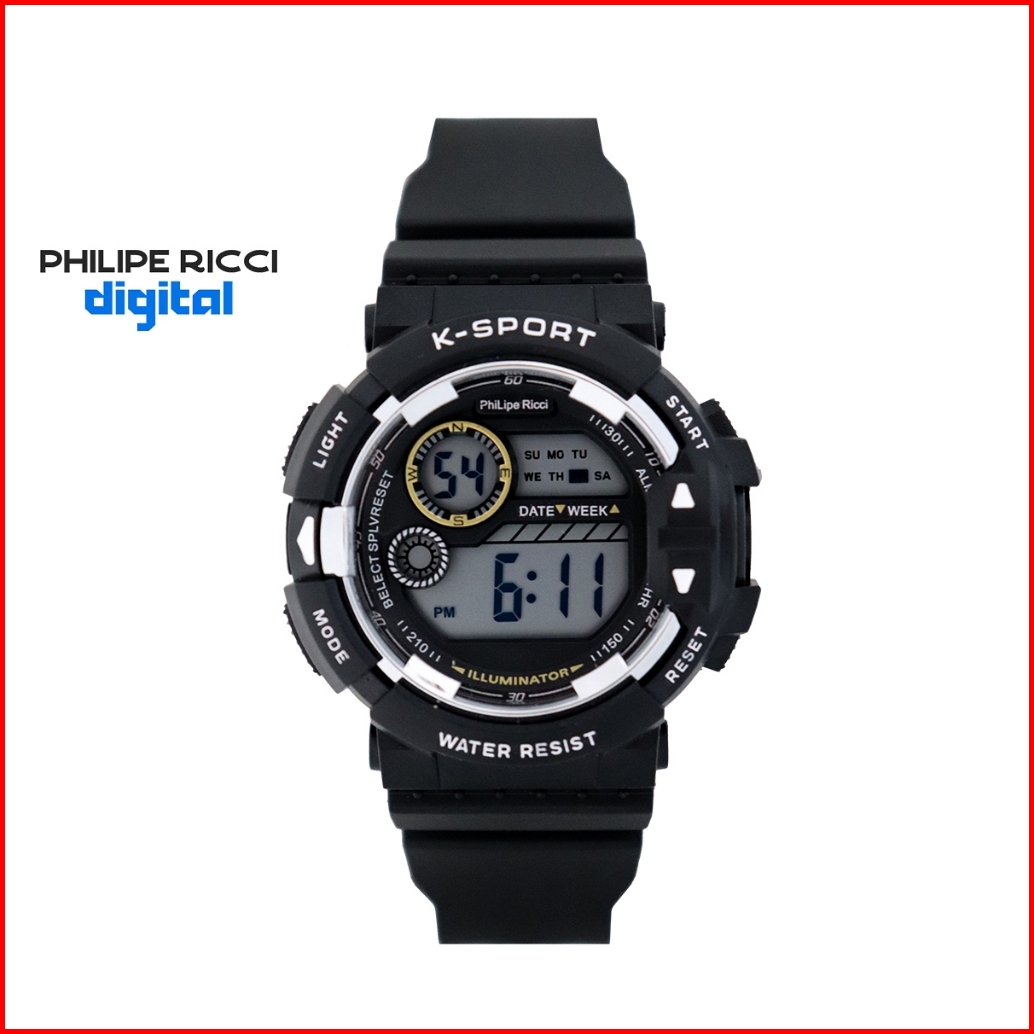 Philipe Ricci Digital Jam Tangan Pria Wanita Anti Air Unisex Diameter Bulat Modern Strap Rubber Desain Simpel Kekinian F