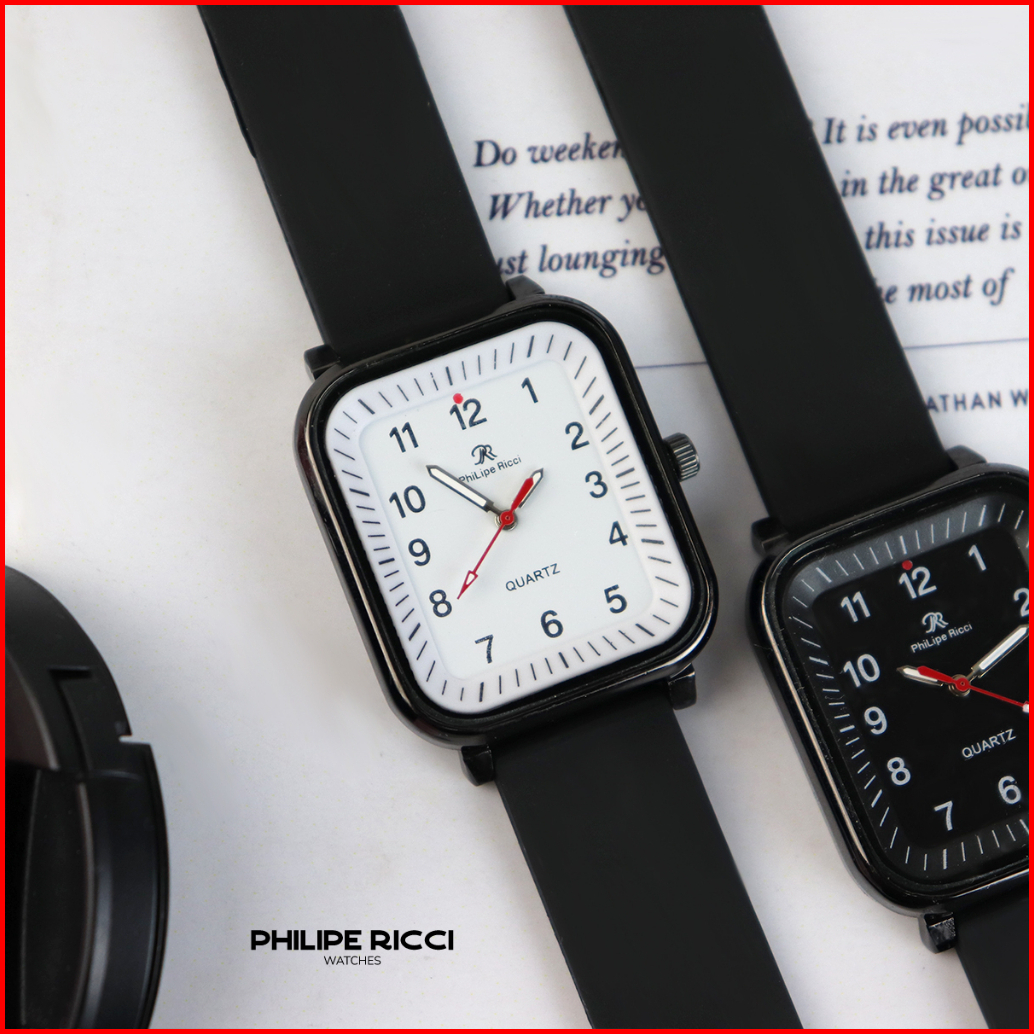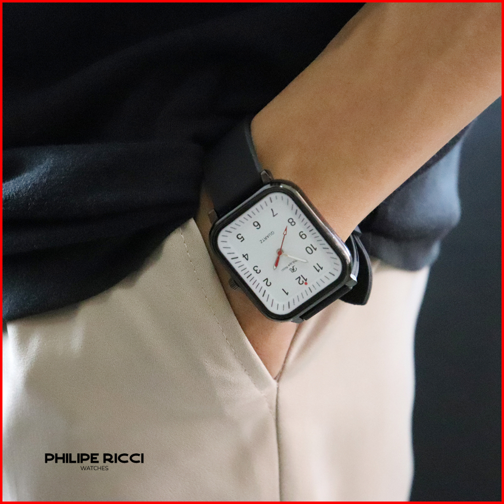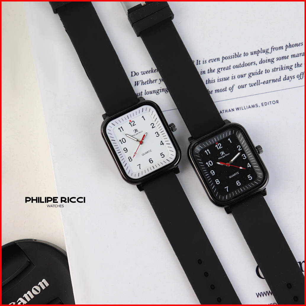 Philipe Ricci Jam Tangan Pria Kasual Original Analog Strap Tali Rubber Karet Model Simpel 8951l Men Watches Square Free