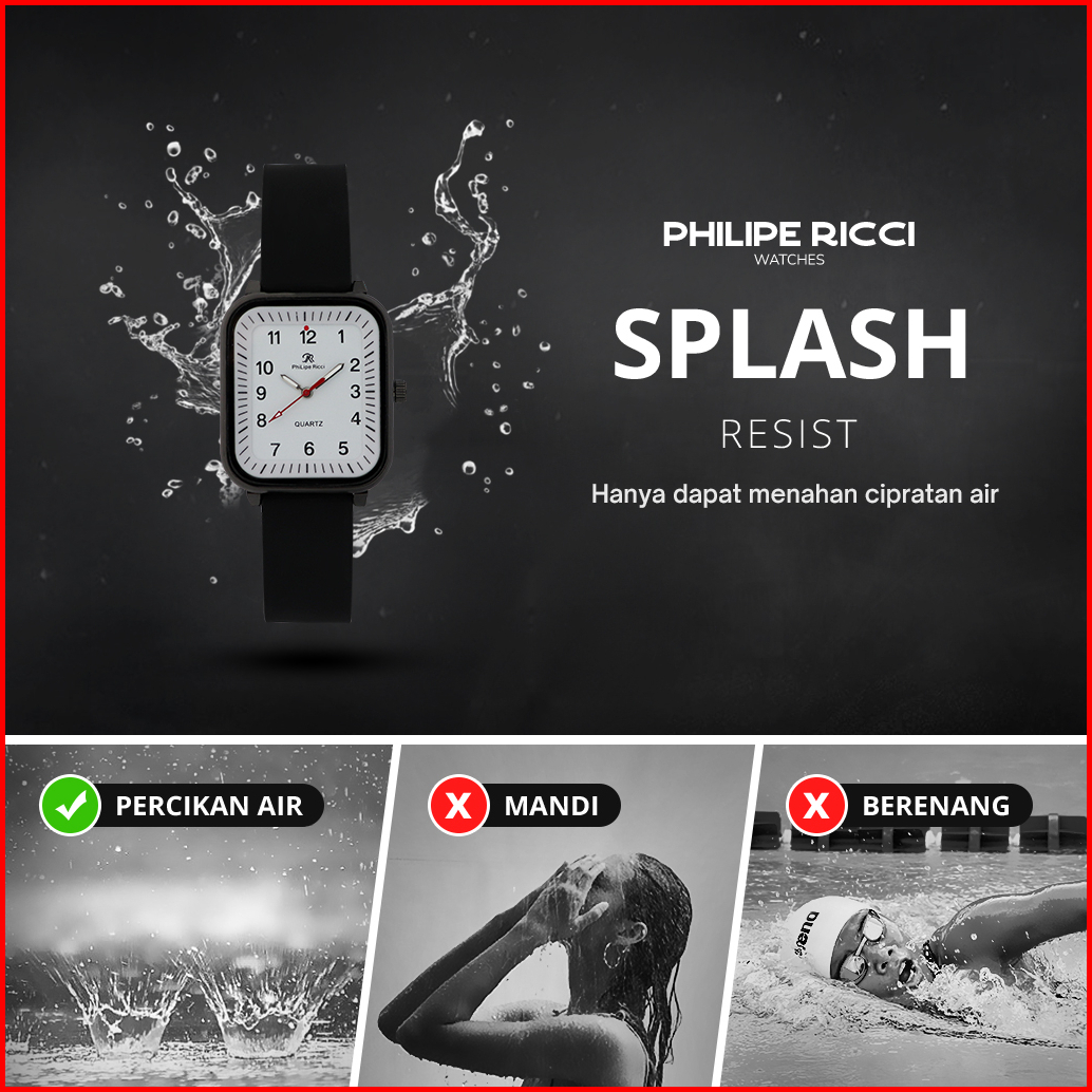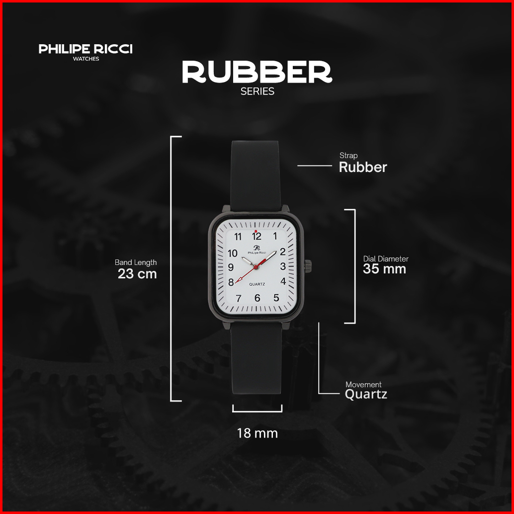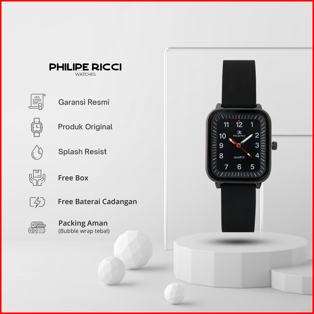 Philipe Ricci Jam Tangan Pria Kasual Original Analog Strap Tali Rubber Karet Model Simpel 8951l Men Watches Square Free
