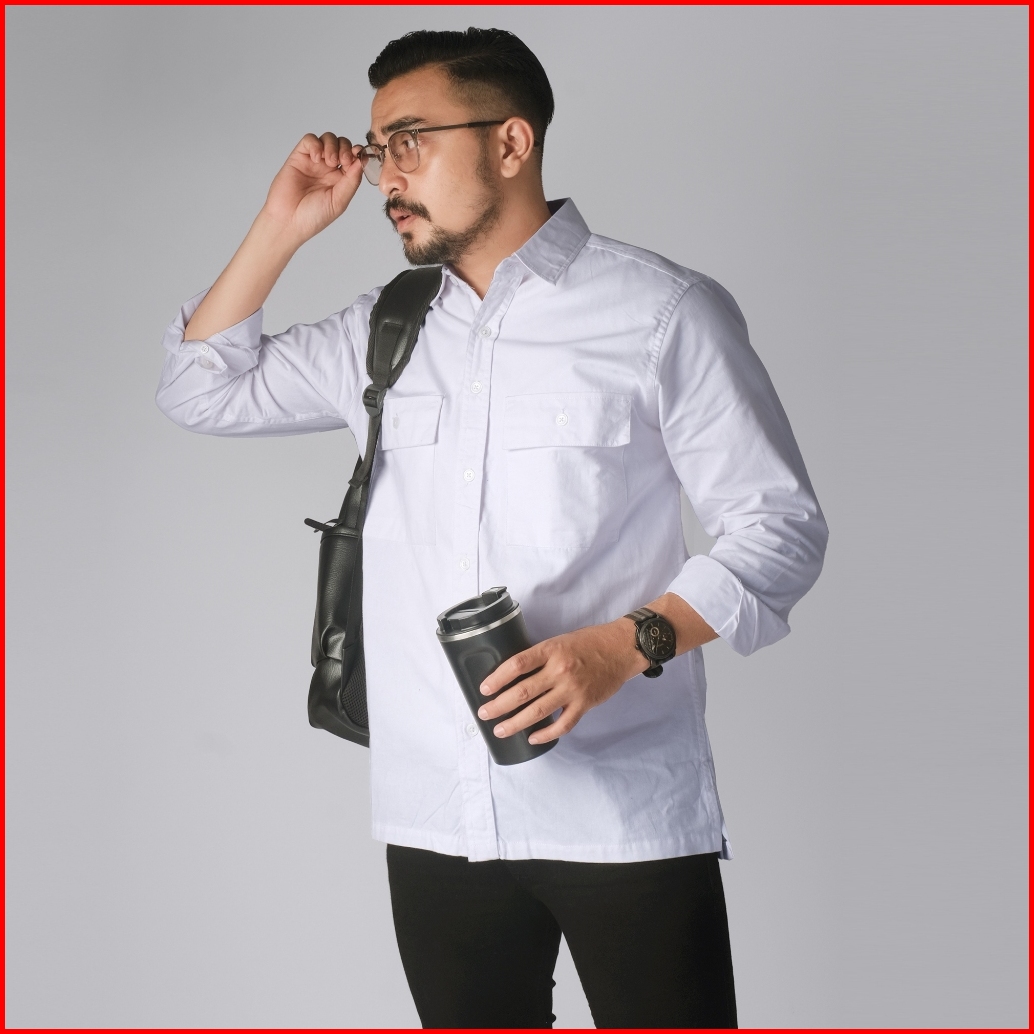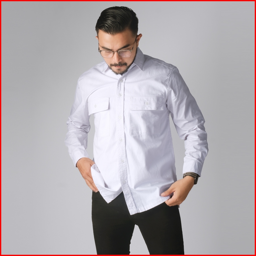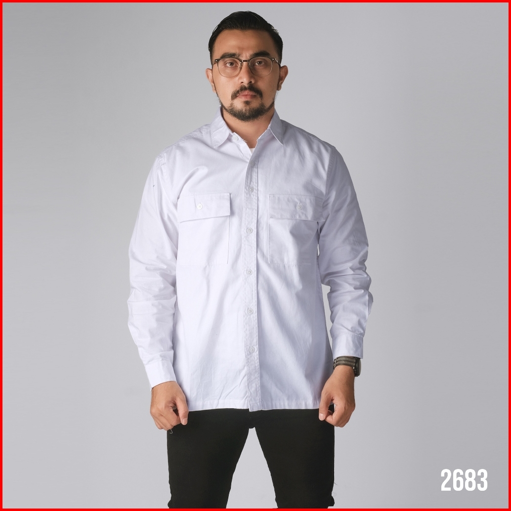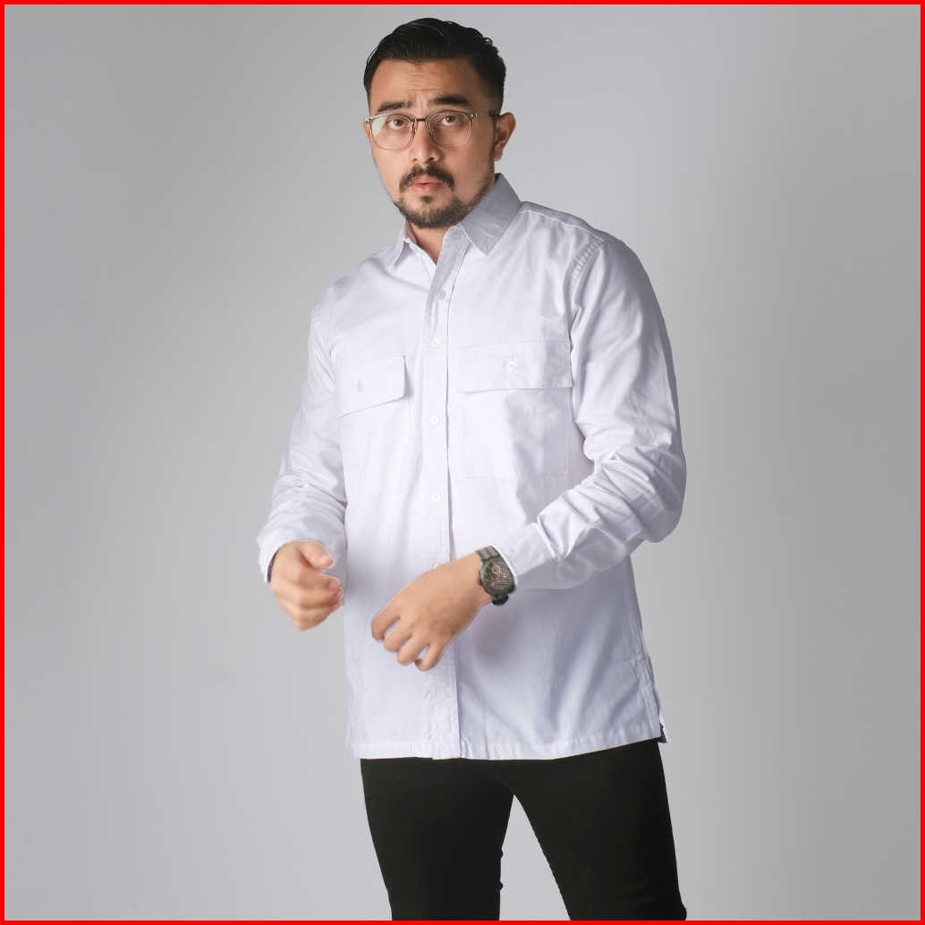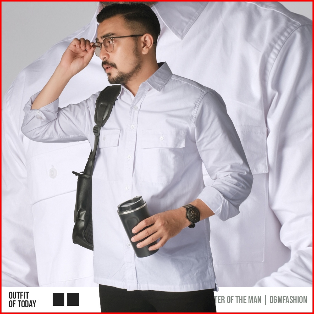 Dgm Kemeja Polos Pria Double Pocket Lengan Panjang Katun Twill 30s Premium Workshirt Kemeja Kerja White 2683