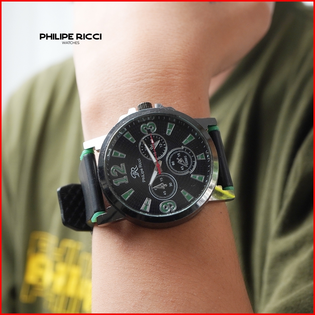 Philipe Ricci Jam Tangan Pria Karet Analog Hitam Terbaru Simple Quartz Pml8 Men Watches Free Box