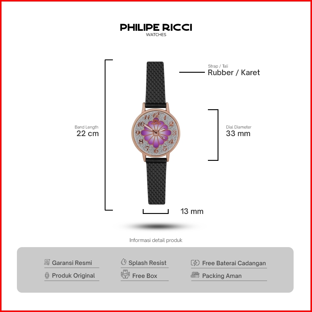Philipe Ricci Jam Tangan Wanita Karet Analog Hitam Kecil Fashion Terbaru Ori 7088k Women Watches Free Box