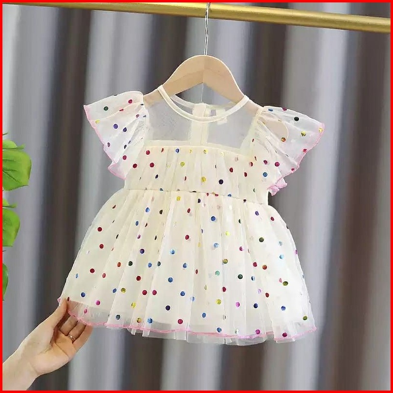 Cweetbaby Dress Pesta Bayi Import Gaun Bayi Tutu Dress Pesta Anak Baby Star Tile Pink Putih Cream