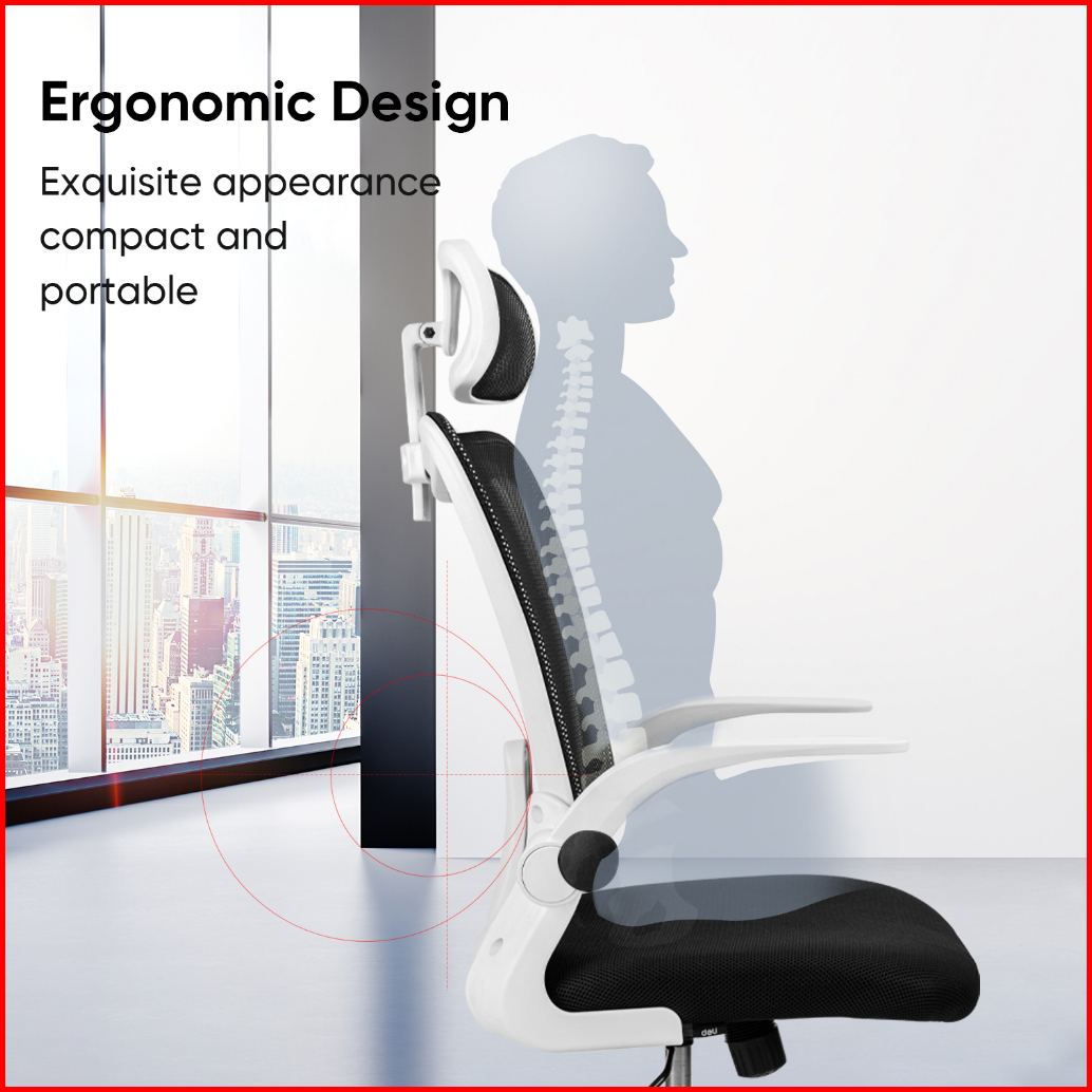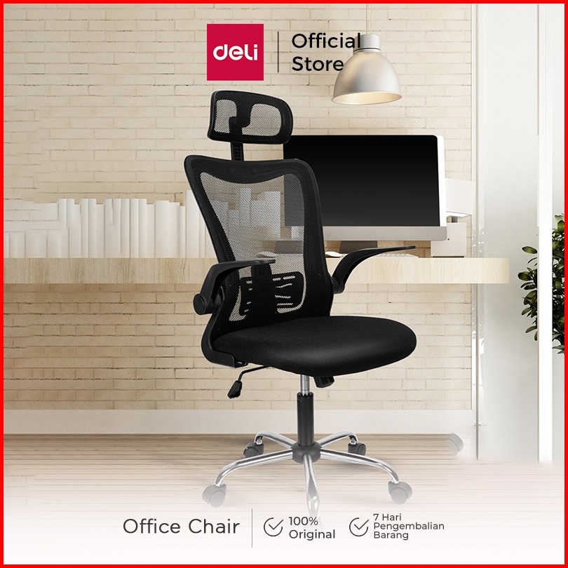 Deli Office Chair Kursi Kantor Kursi Kerja Jaring Dengan Senderan Kepala Sangat Nyaman E4925 E4926