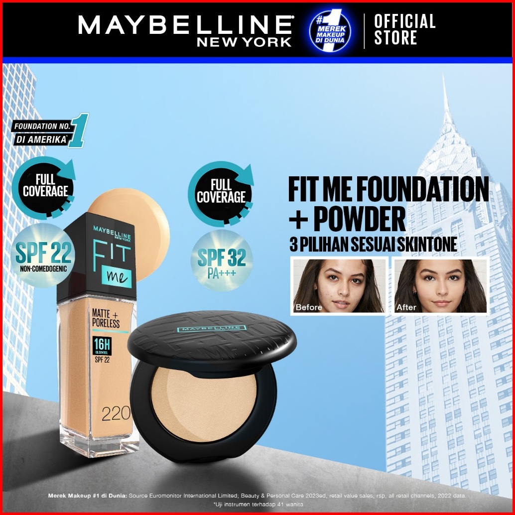 Maybelline Paket Makeup Fit Me Compact Powder Fit Me Liquid Foundation Free Gift Oil Control Tahan Lama
