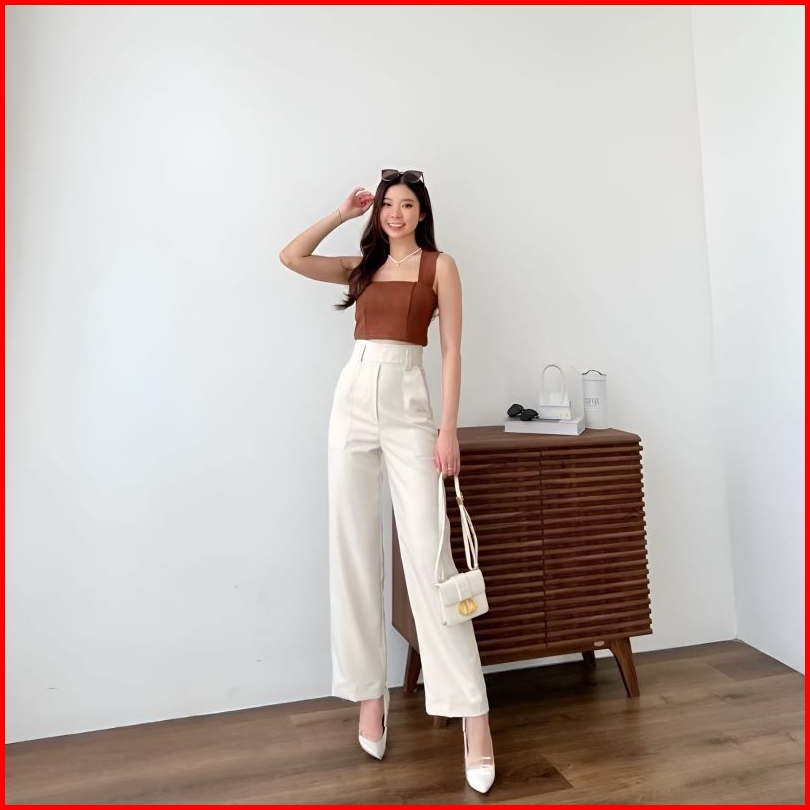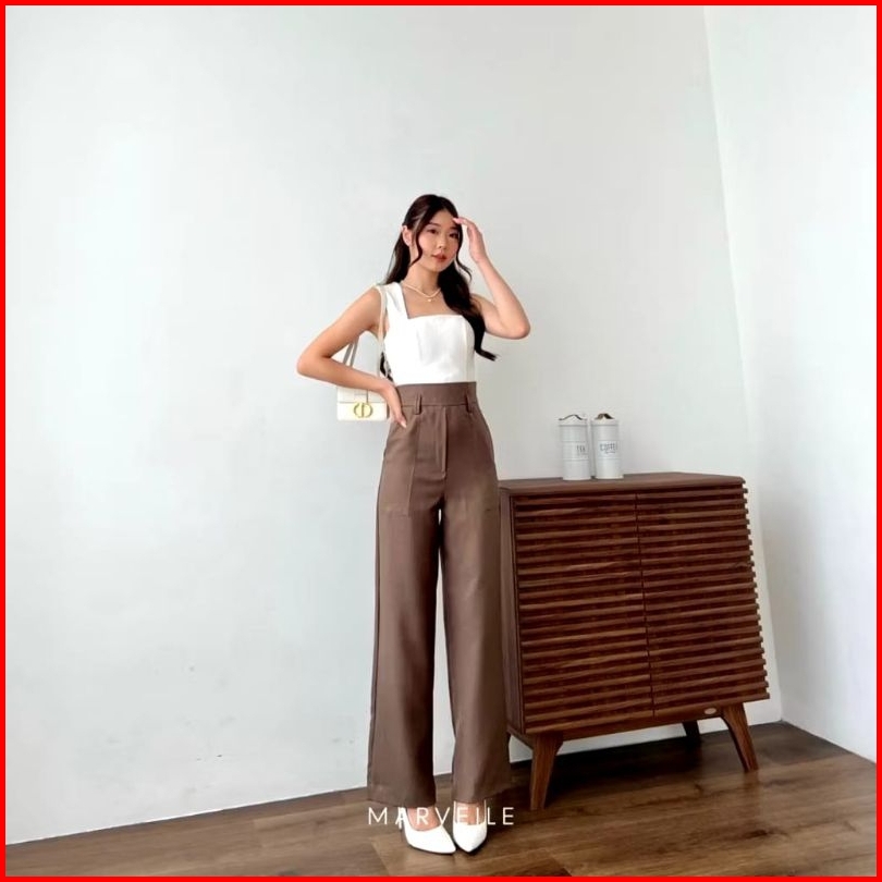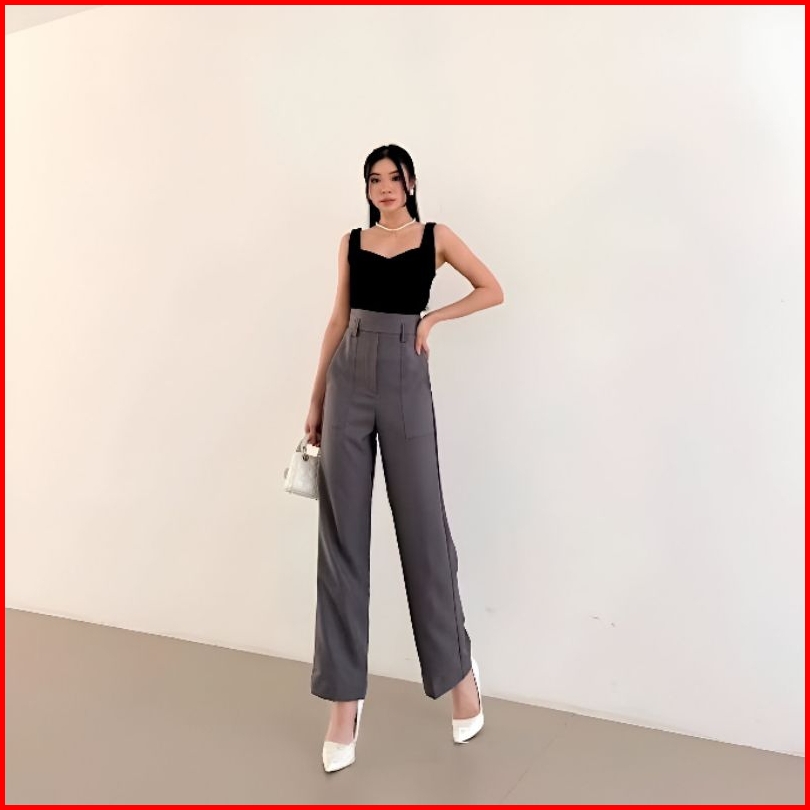 Diora Pants- Celana Highwist Kulot Wanita Straight Cut Pants