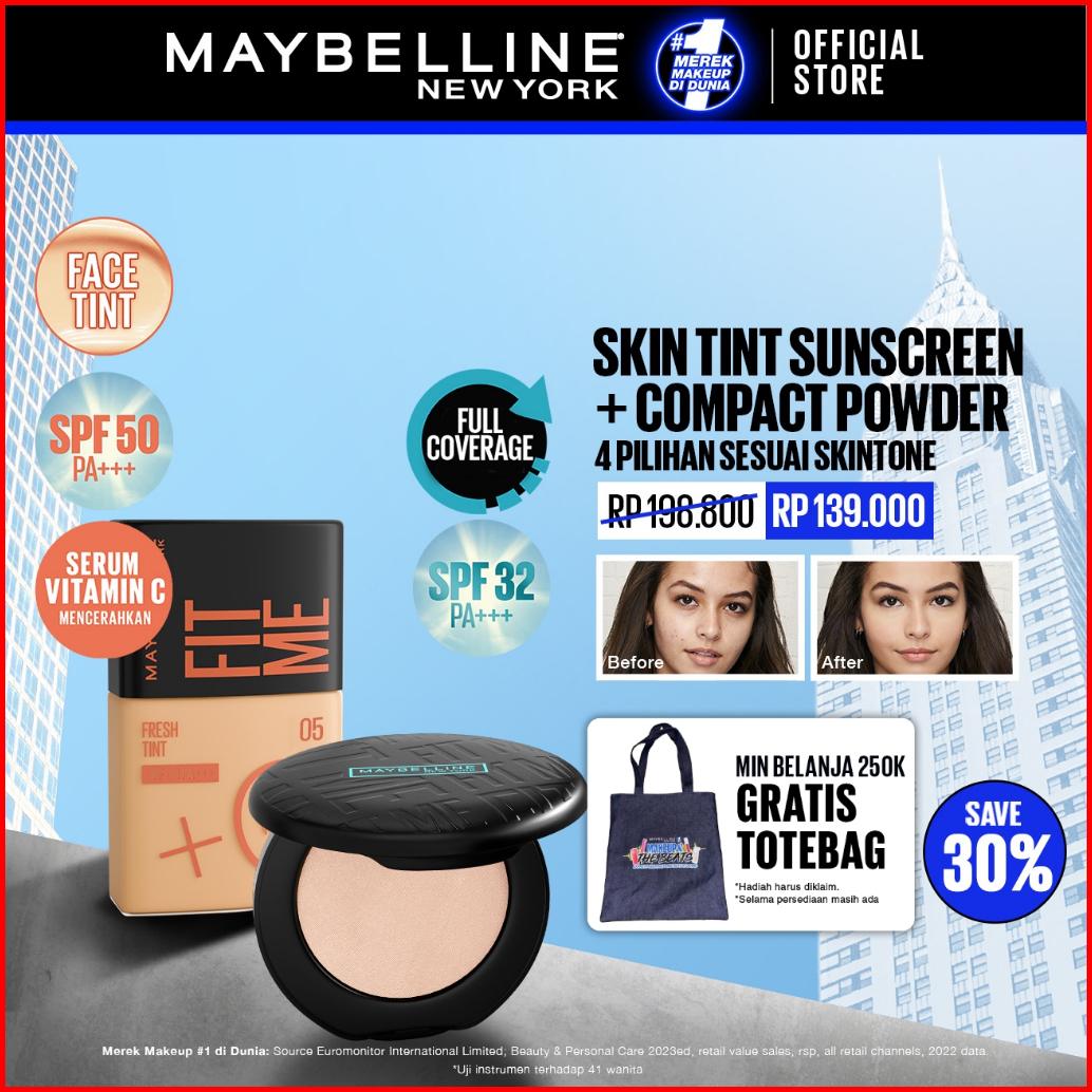 Maybelline Skin Tint Makeup Kit - Fit Me Fresh Tint Powder Skin Tint Foundation Spf 50 Pa Vitamin C Serum Face Makeup Na