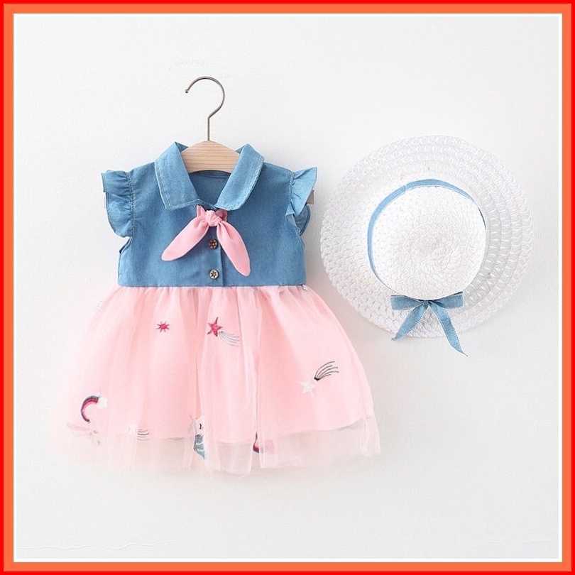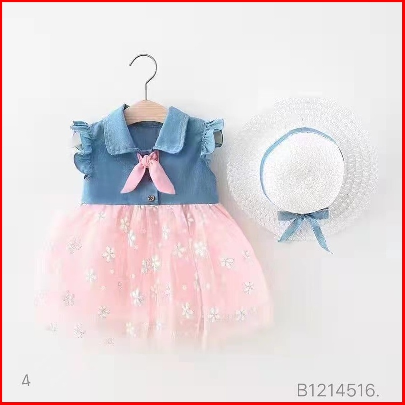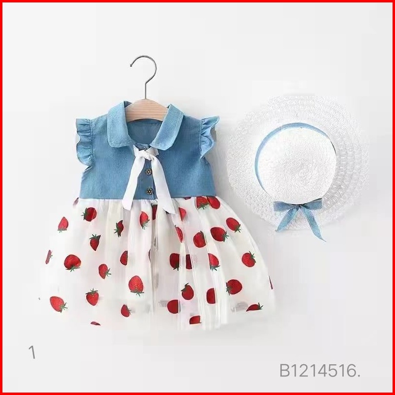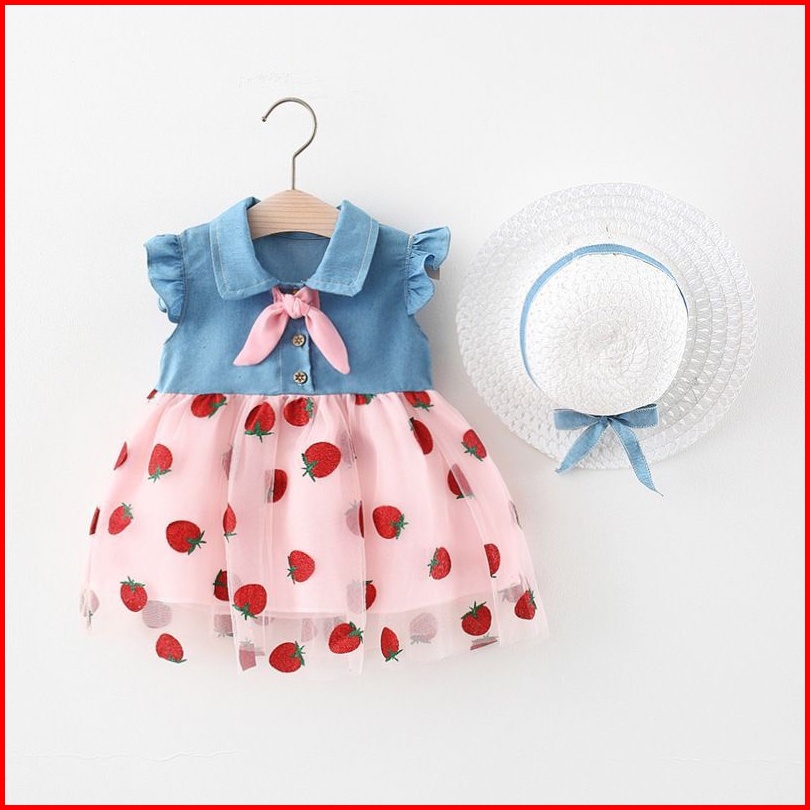 Promo Dress Anak Perempuan Import Lengan Pendek Free Topi Baju Baby Cewek Gaun Bayi Lucu Imut
