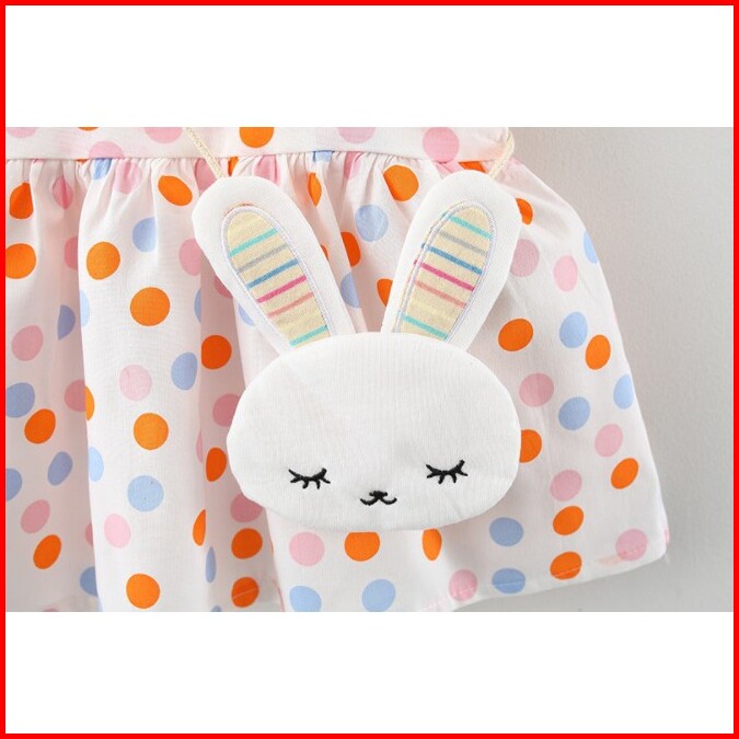 Pkd91-dress Bayi Baju Dress Anak Pakaian Anak Tanpa Lengan Anak Polkadot Dengan Aksesories Tas Kelinci