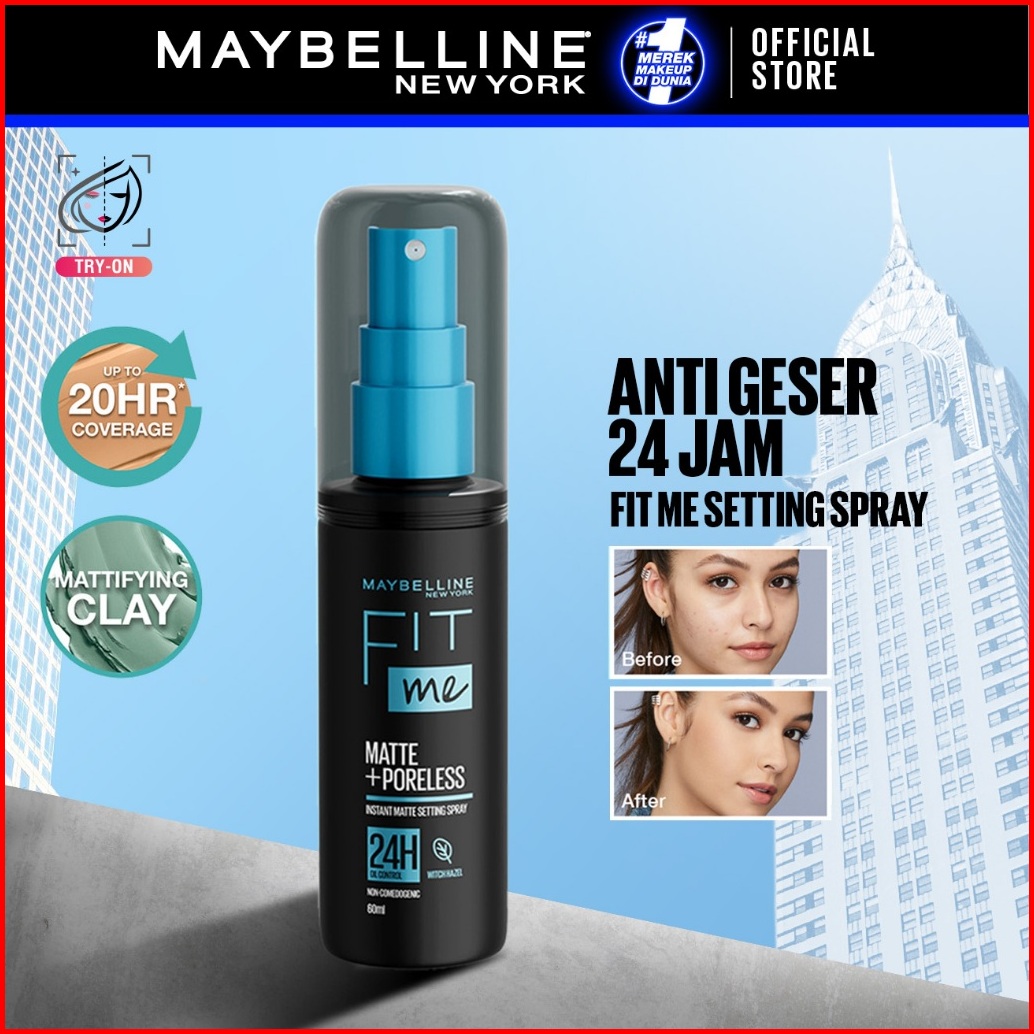 Maybelline Fit Me Setting Spray Make Up - 60ml Makeup Tahan Hingga 24 Jam Dan Tidak Menimbulkan Jerawat Walau Pakai Make