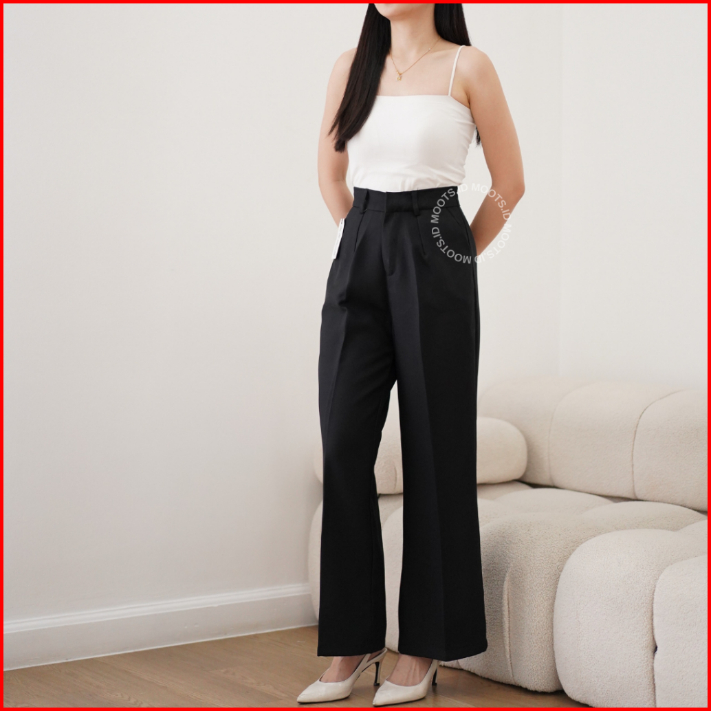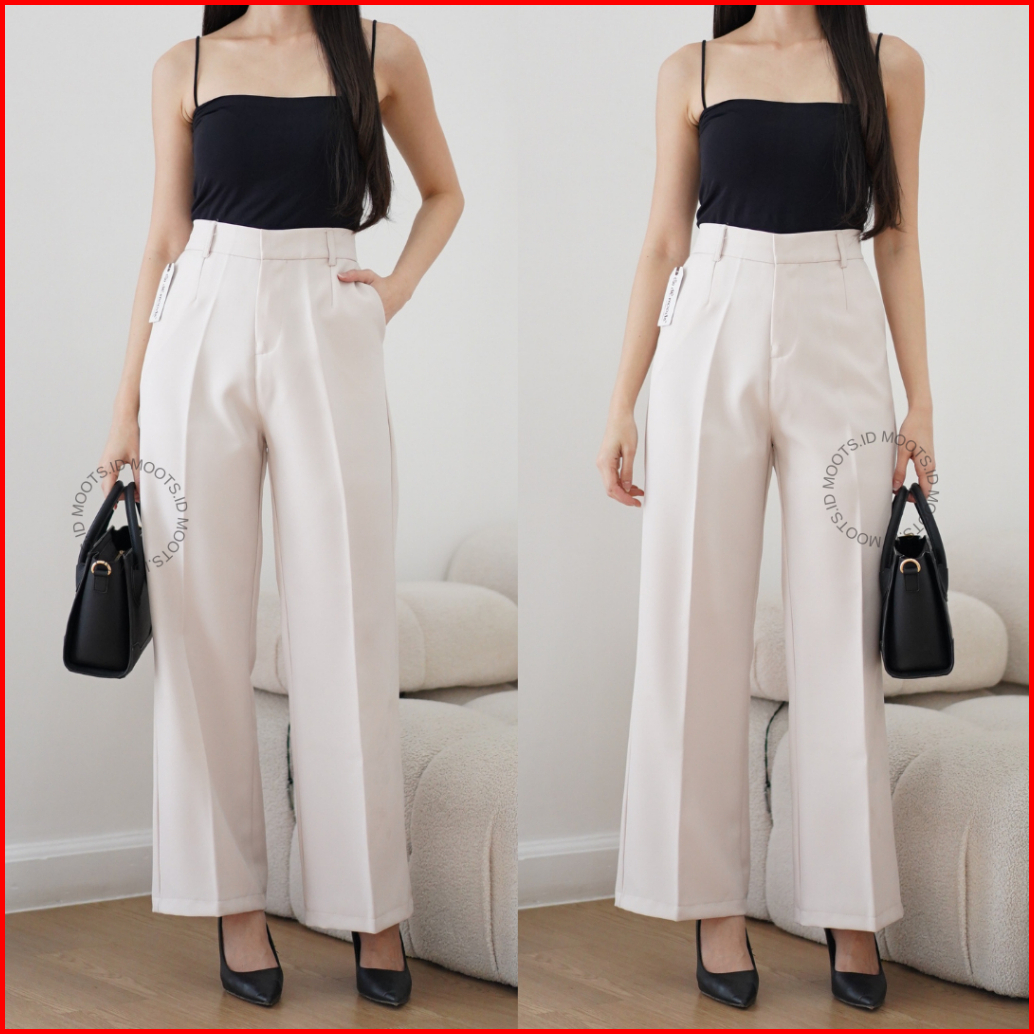 Etta Pants - Celana Highwaist Semi Flare Pants - Celana Kerja Wanita - Kulot Loose Pants - Celana Anti Kusut Semiwoll