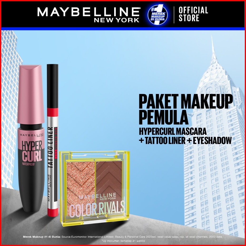 Maybelline Paket Hemat Hypercurl Waterproof Mascara Tattoo Liner 48hr Color Rivals Eyeshadow Waterproof Maskara Eye Make