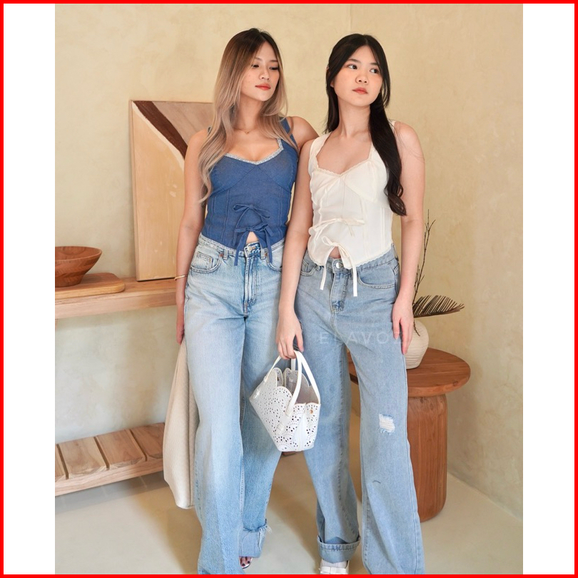 Elavoz Parline Ribbon Top Atasan Wanita Atasan Korea Top Lucu
